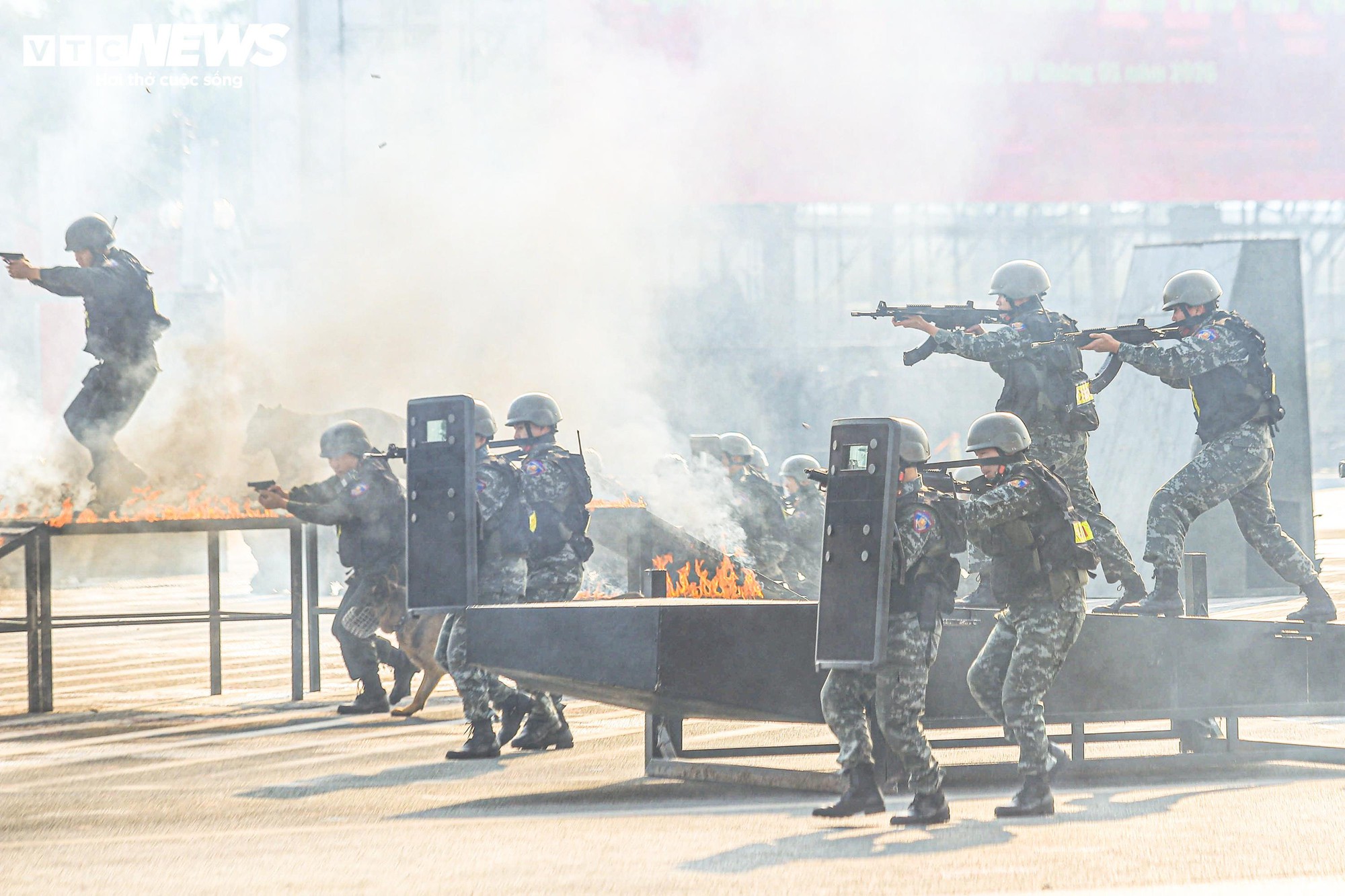 Tiếp đó là phần trình diễn kỹ thuật vượt chướng ngại vật, bắn súng ứng dụng và phối hợp tác chiến của lực lượng Cảnh sát đặc nhiệm cùng đơn vị sử dụng động vật nghiệp vụ.