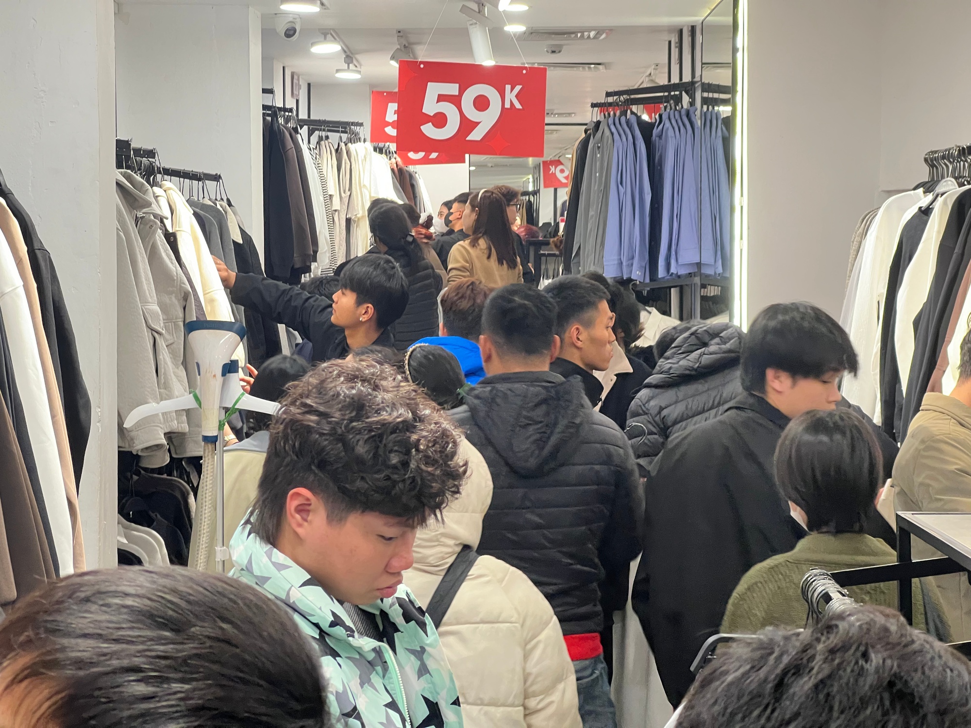 Bên trong các shop, khách liên tục ra vào, thử đồ và thanh toán, tạo nên không khí nhộn nhịp giữa tiết trời giá rét.