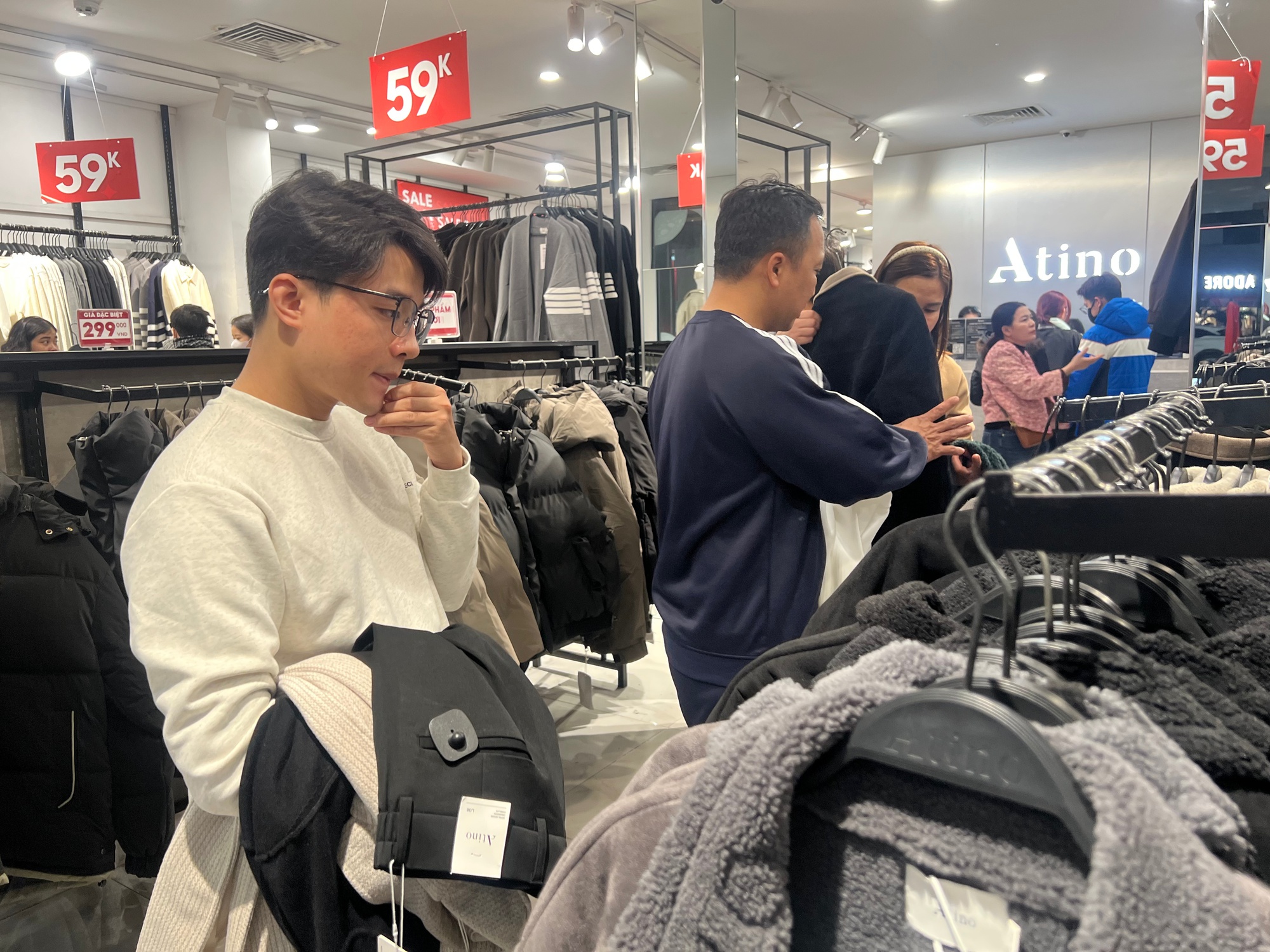 Tương tự, anh Minh Quân (phường Thanh Xuân) cho biết dù bận rộn cuối năm nhưng vẫn cố gắng đưa vợ đi mua sắm: "Thời tiết lạnh nhưng không khí Tết rõ ràng lắm. Các cửa hàng giảm giá khá sâu, có chỗ giảm 40–50%, nên tranh thủ mua sẽ tiết kiệm được kha khá."