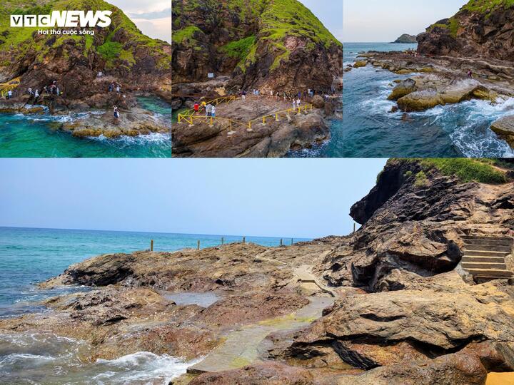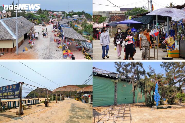 Sự náo nhiệt ủa năm 2024, đầu năm 2025 nay được thay thế bằng sự hoang tàn, buồn tẻ. Những gành đá được đầu tư trang trí tạo điểm nhấn cho du khách chụp ảnh, tham quan giờ đây chỉ là một bãi đá trống trơn và những trụ sắt gỉ sét. (Ảnh trước và sau)