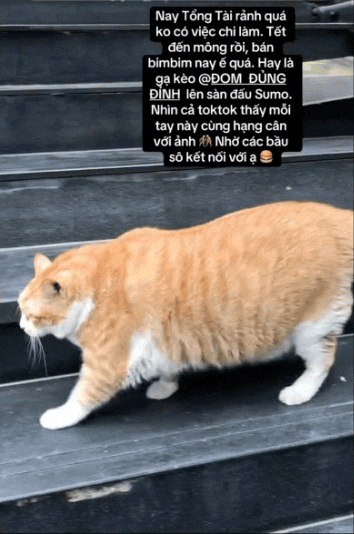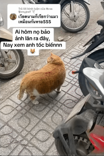 Với thân hình như "nuốt trái mít" của mình, "cậu cả" đi đến đâu là gây xôn xao đến đấy. Mèo nhà người ta thì đi catwalk, chân bước một hàng thẳng tắp, "cậu cả" tiệm tạp hóa với chiếc bụng mỡ gần chạm đất, bước chân hai hàng song song, còn bờ mông thì lắc lư nhịp nhàng.