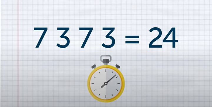 Câu đố này yêu cầu bạn thêm các dấu nhân, chia, cộng, trừ và các dấu ngoặc làm sao để các chữ số 7, 3, 7, 3 có kết quả bằng 24.