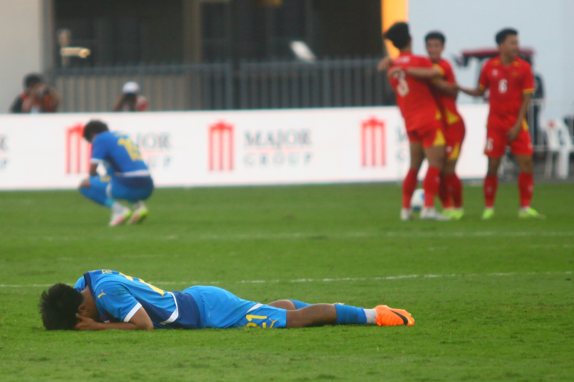 Anh ngồi thẫn thờ ở sân Rajamangala đến gần 15 phút sau khi trận đấu khép lại mới rời đi.