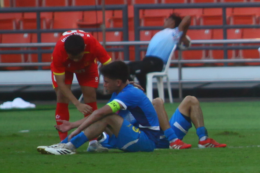 Khung cảnh thể hiện sự nghiệt ngã của bóng đá. Rublico ngậm ngùi ngồi nhìn U22 Việt Nam ăn mừng tấm vé vào chung kết.