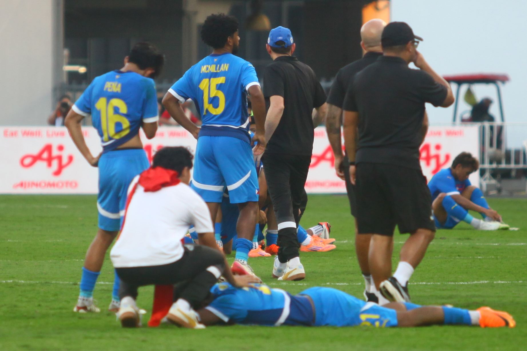 Kết thúc trận đấu, nhiều cầu thủ Philippines òa khóc.
