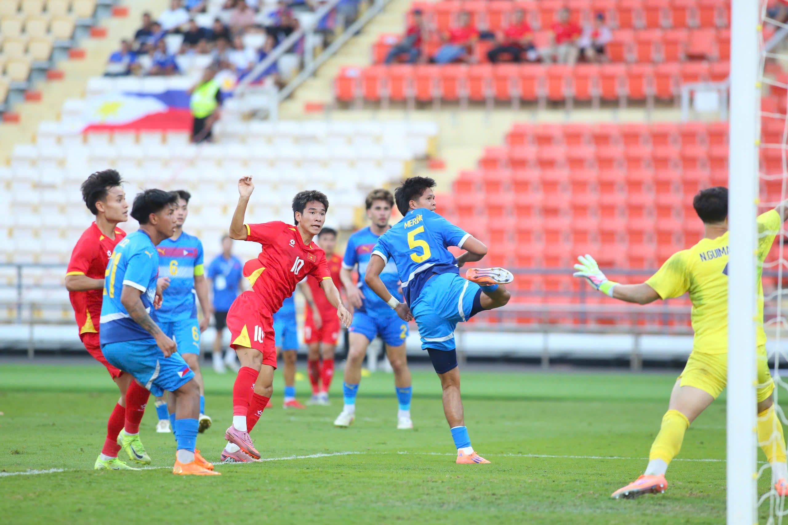 Phút 89 trận bán kết SEA Games 33 trước U22 Việt Nam và U22 Philippines, Văn Thuận đánh đầu mở tỉ số trận đấu.