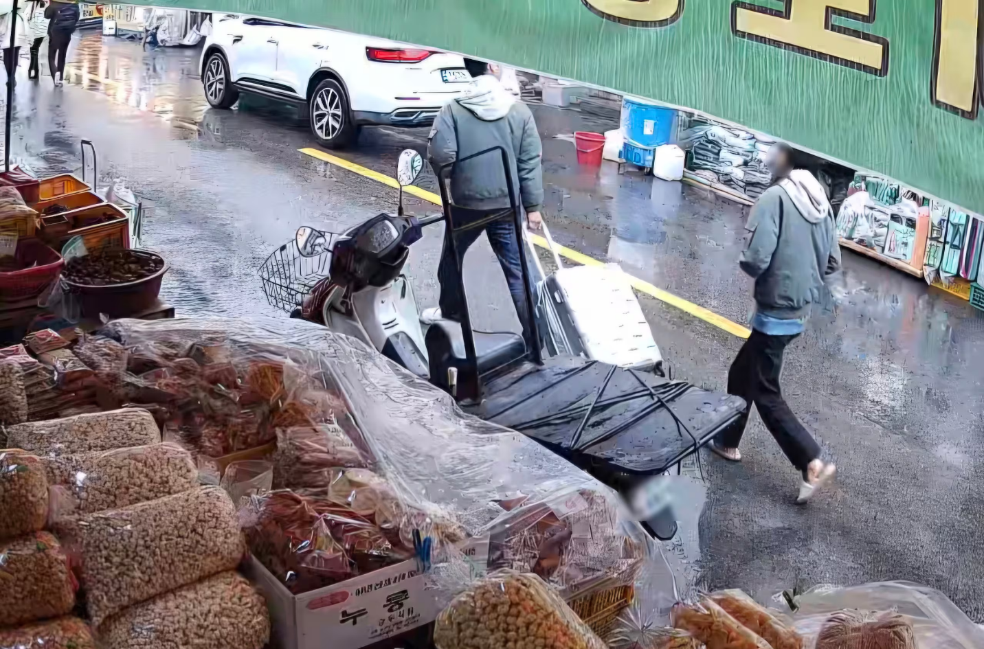 Hình ảnh từ CCTV ghi cảnh đôi vợ chồng đưa vali chứa thi thể mẹ đem đi phi tang