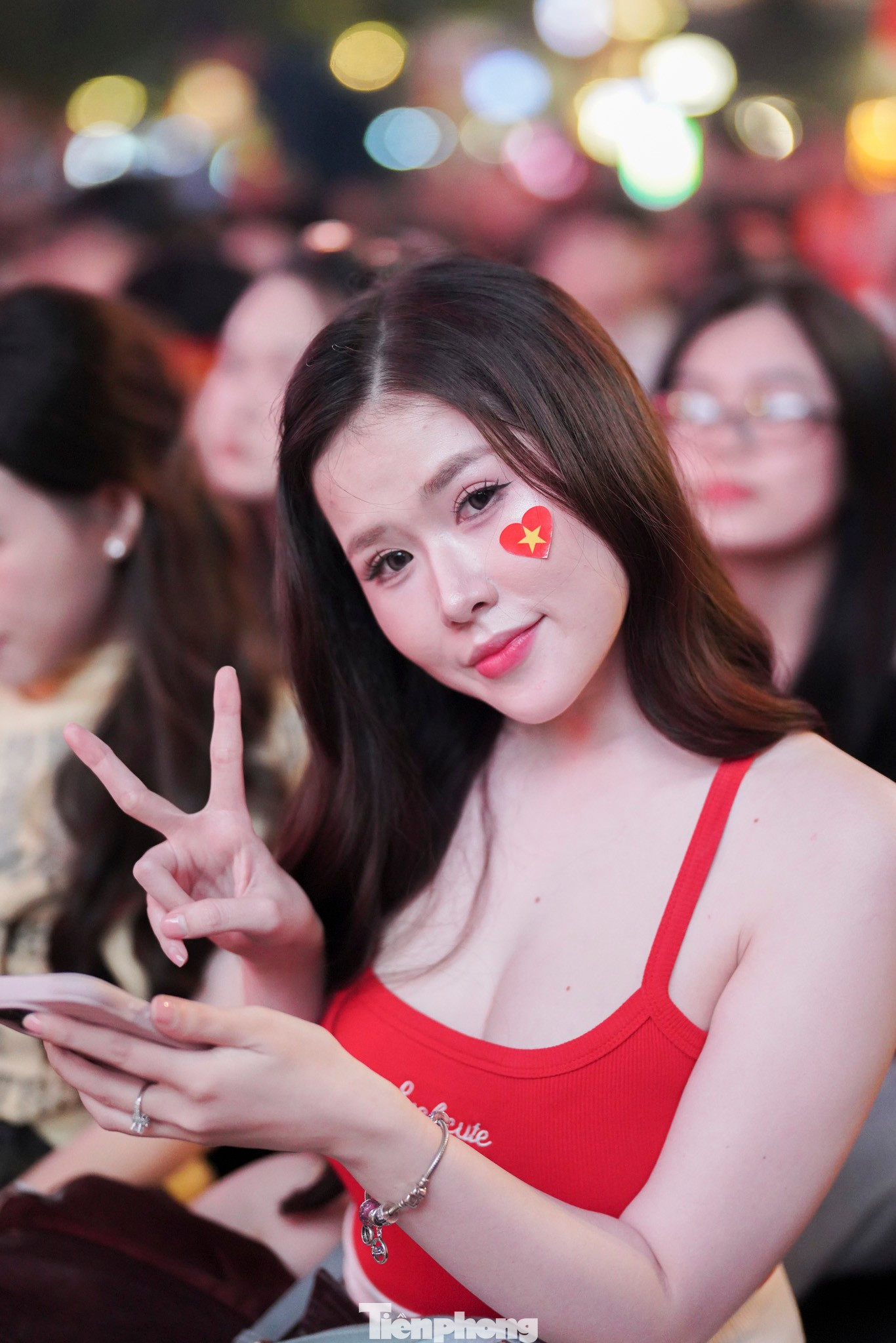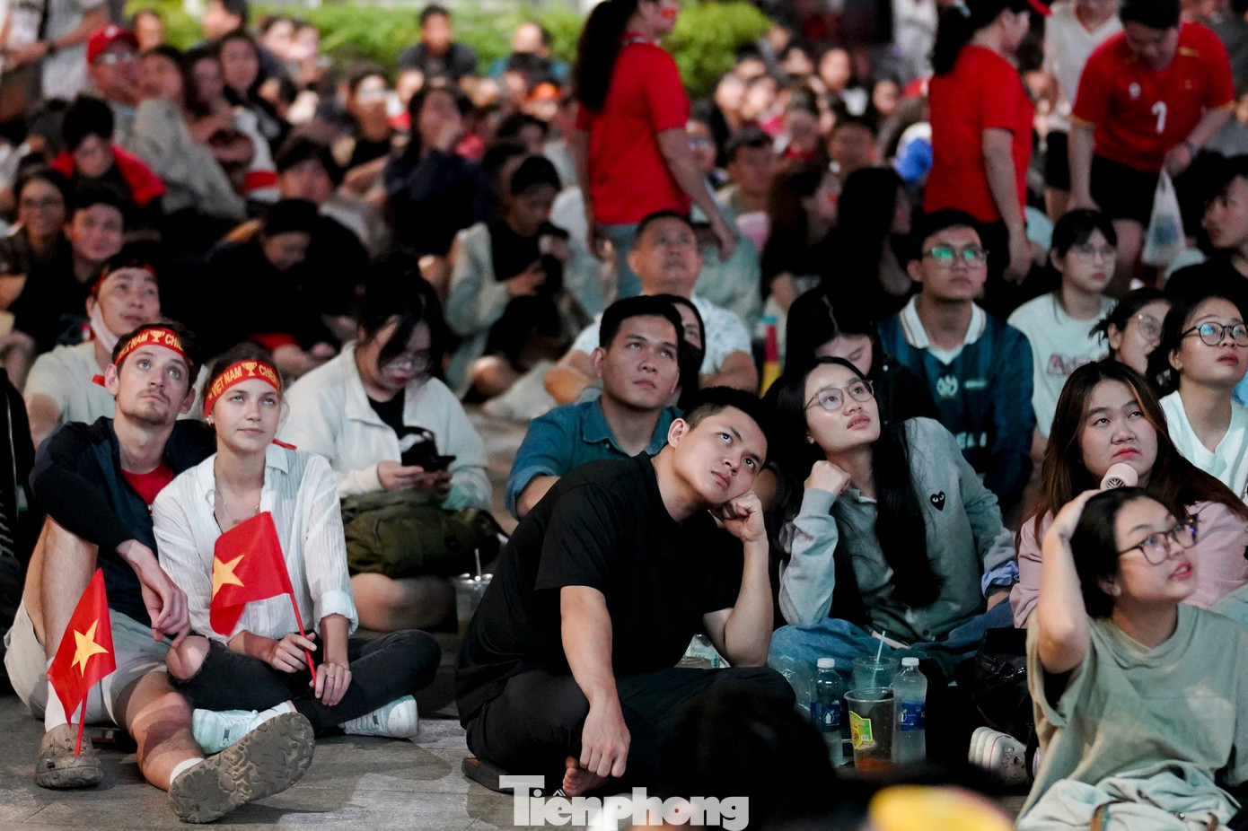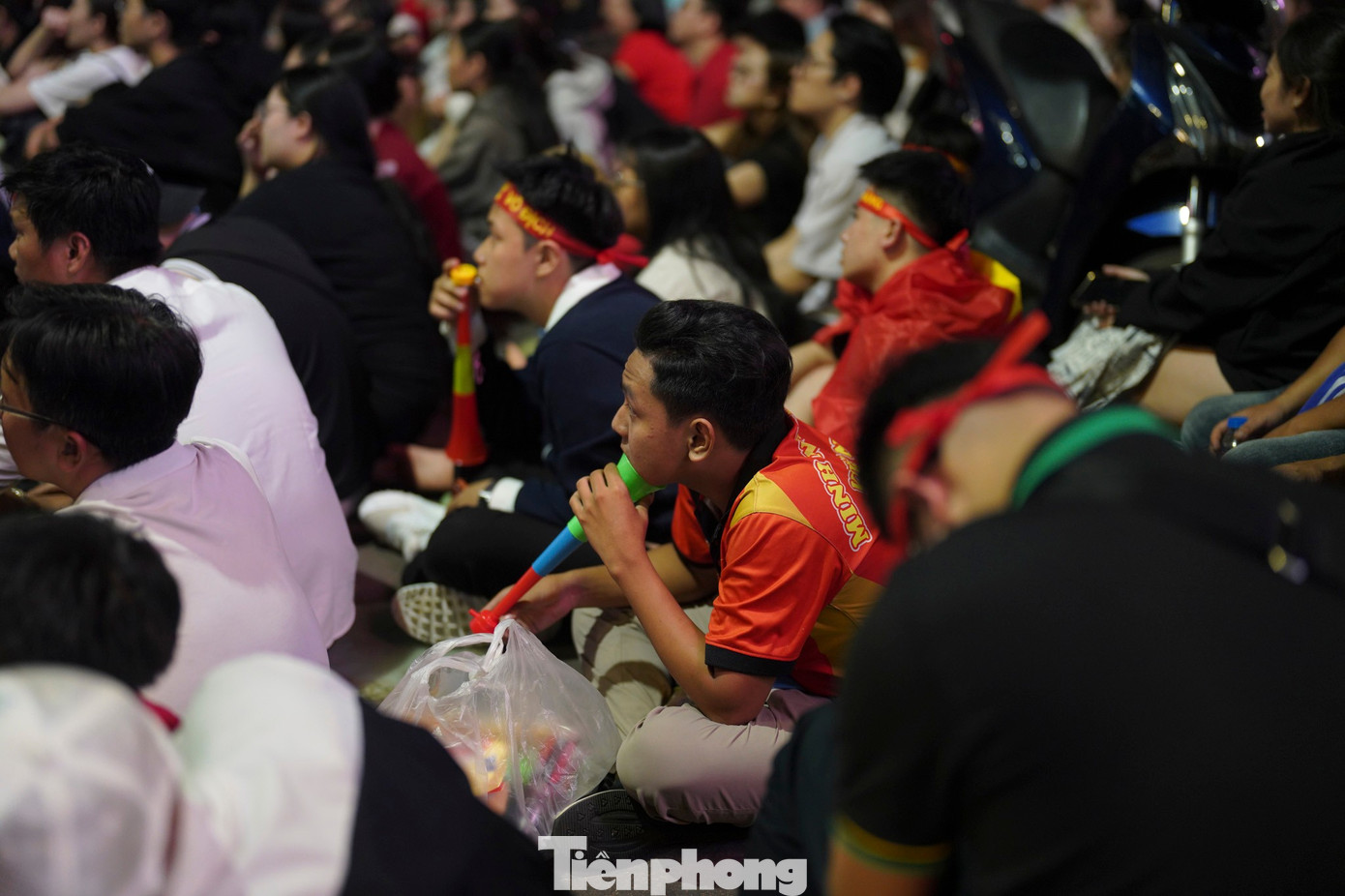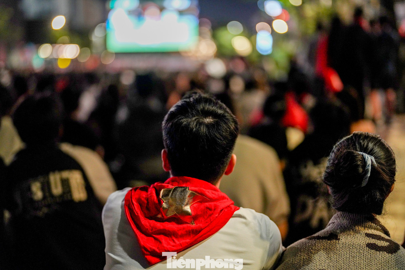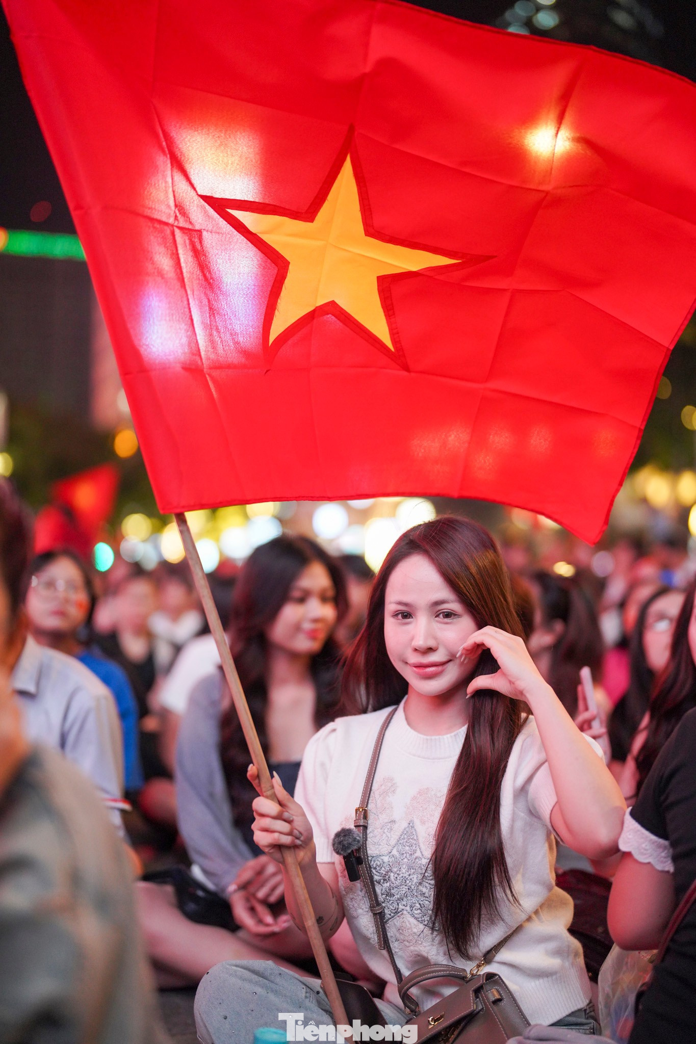 Tầm 19h, không khí tại phố đi bộ Nguyễn Huệ trở nên sôi động, rực rỡ sắc màu cờ đỏ sao vàng. Các cổ động viên có mặt từ sớm, mang theo trống, kèn, băng rôn, cờ Tổ quốc cùng những khẩu hiệu quen thuộc để tiếp thêm tinh thần cho các “chiến binh sao vàng”.