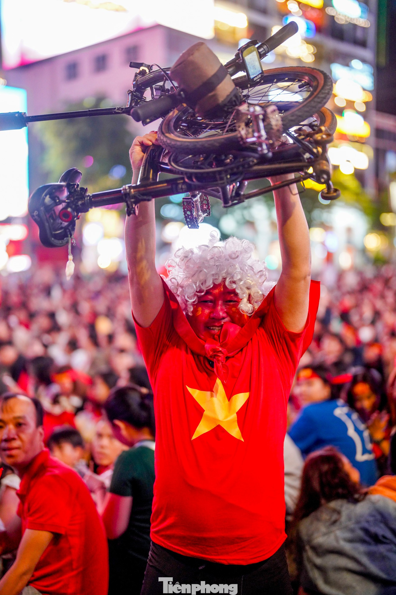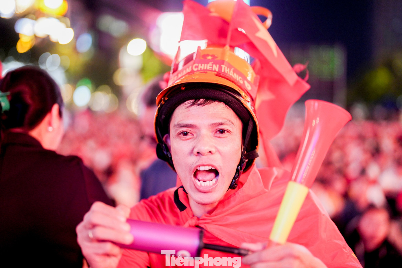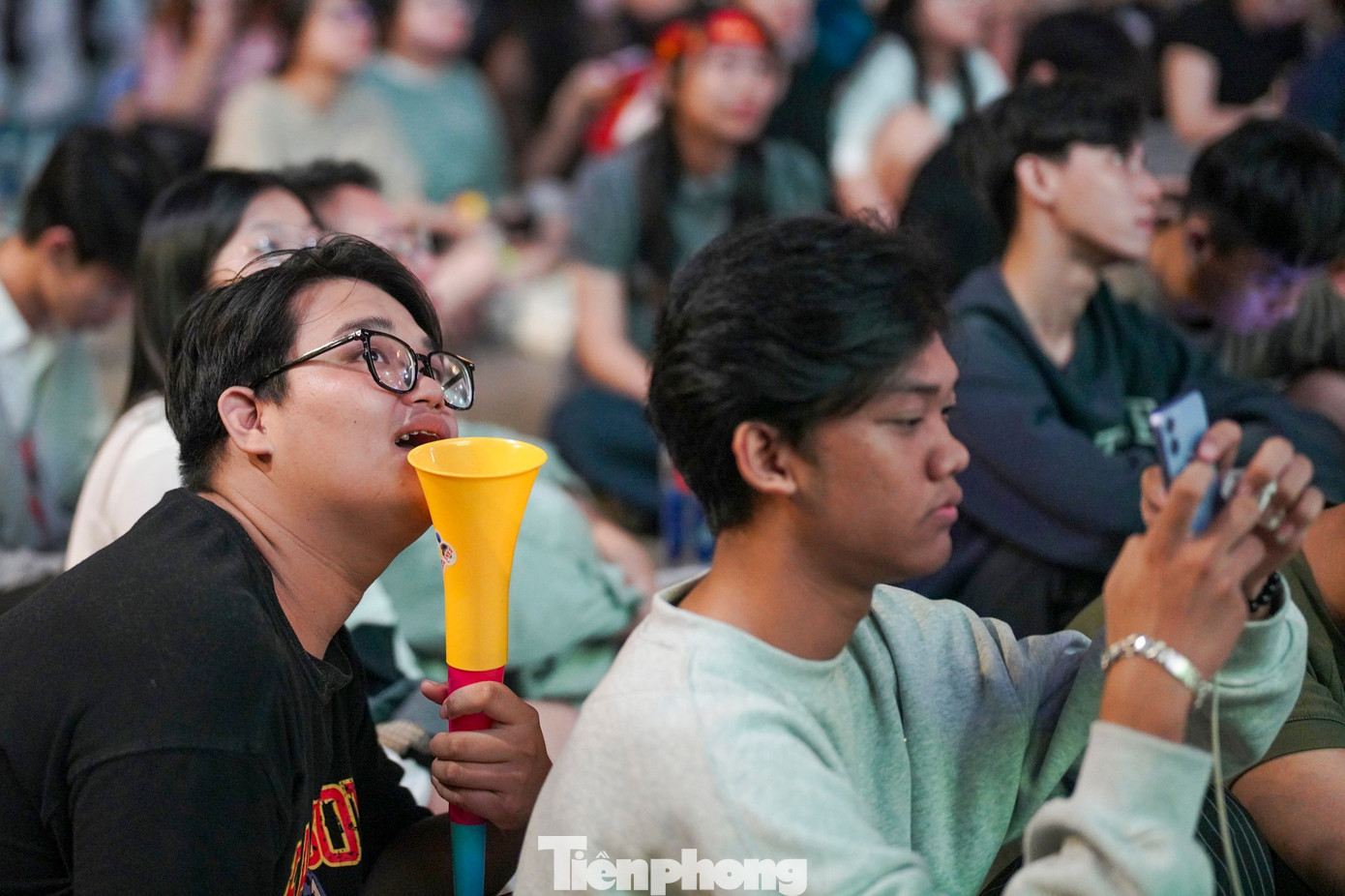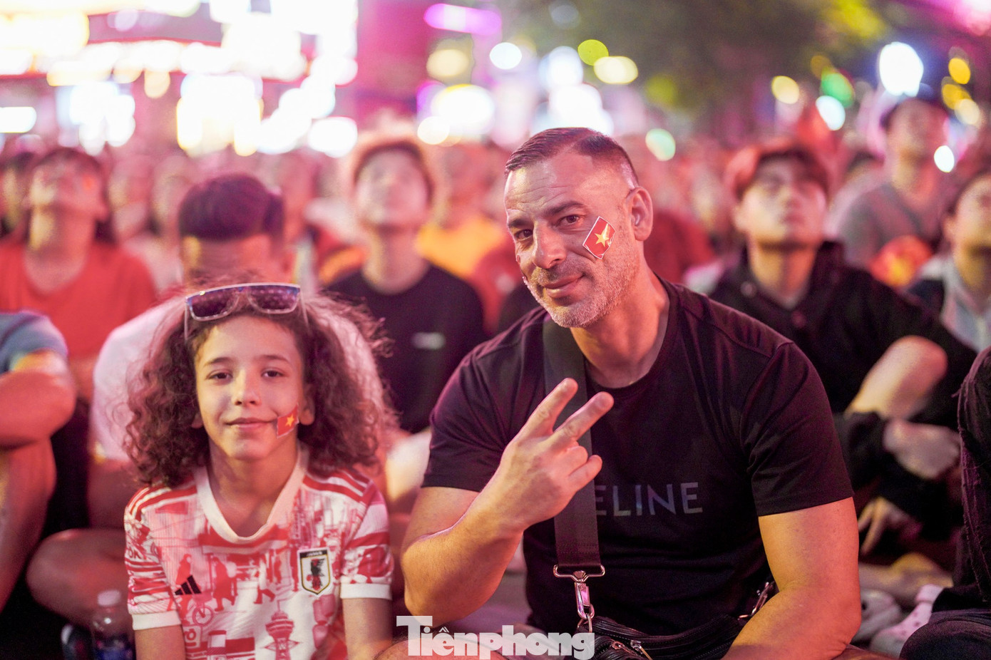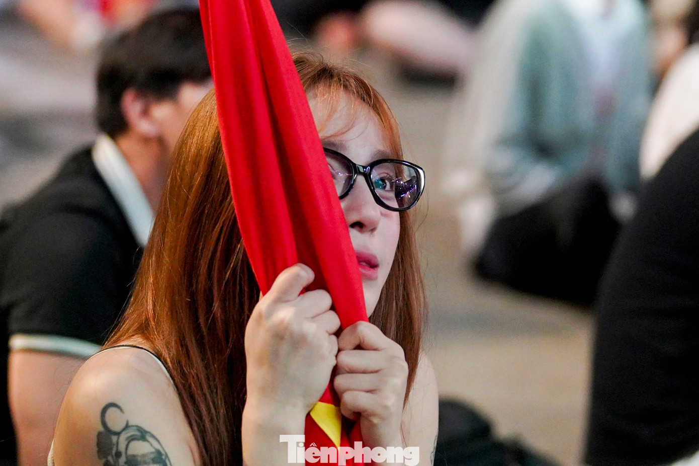 Tầm 19h, không khí tại phố đi bộ Nguyễn Huệ trở nên sôi động, rực rỡ sắc màu cờ đỏ sao vàng. Các cổ động viên có mặt từ sớm, mang theo trống, kèn, băng rôn, cờ Tổ quốc cùng những khẩu hiệu quen thuộc để tiếp thêm tinh thần cho các “chiến binh sao vàng”.