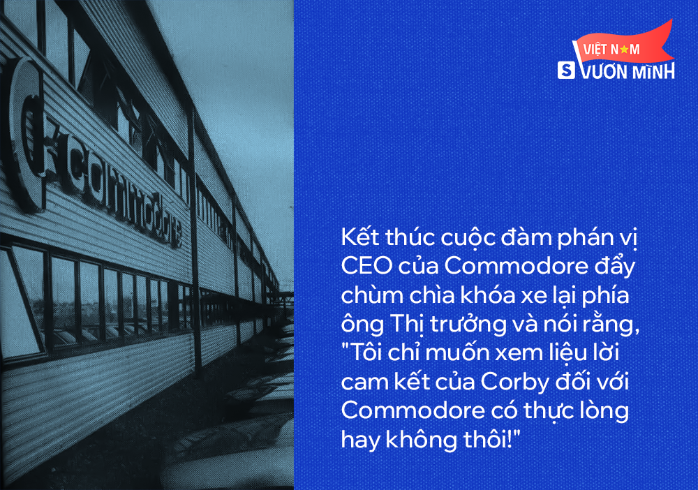Câu chuyện tôi muốn chia sẻ lại ở đây là diễn biến của cuộc đàm phán giữa Commodore và chính quyền thành phố Corby. Trước khi chốt thỏa thuận đặt Commodore tại khu vực này, CEO của Commodore đã nói với ông Thị trưởng: "Tôi còn một yêu cầu nữa: Tôi rất thích chiếc Jaguar cổ điển của thành phố Corby [đó là một chiếc xe thể thao đắt đỏ bậc nhất của Anh]. Tôi sẽ đặt chi nhánh tại đây nếu ông giao chiếc xe đó cho tôi."