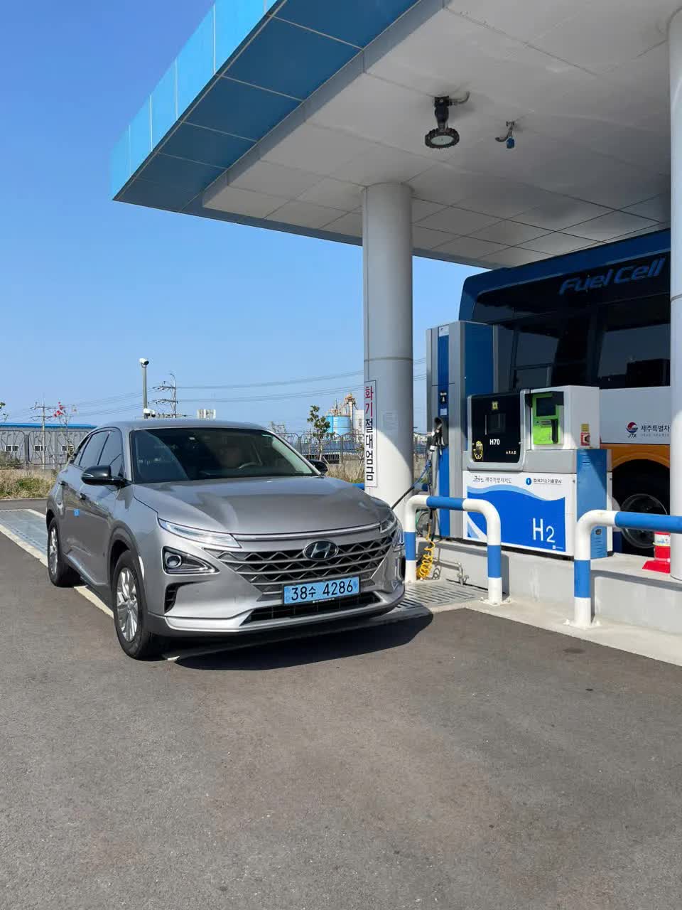 Trong chuyến tham quan trạm nạp nhiên liệu sạch tại Jeju, tôi không may mắn được ngồi trên chiếc xe buýt chạy bằng hydro xanh như một số đồng nghiệp quốc tế – do thua trong cuộc chơi "rock paper scissors" vui vẻ. Dù vậy, tôi vẫn kịp ngồi thử vào khoang lái của một chiếc xe con chạy hydro, cảm nhận không gian hiện đại và tưởng tượng mình đang trôi nhẹ giữa một thành phố không tiếng ồn.