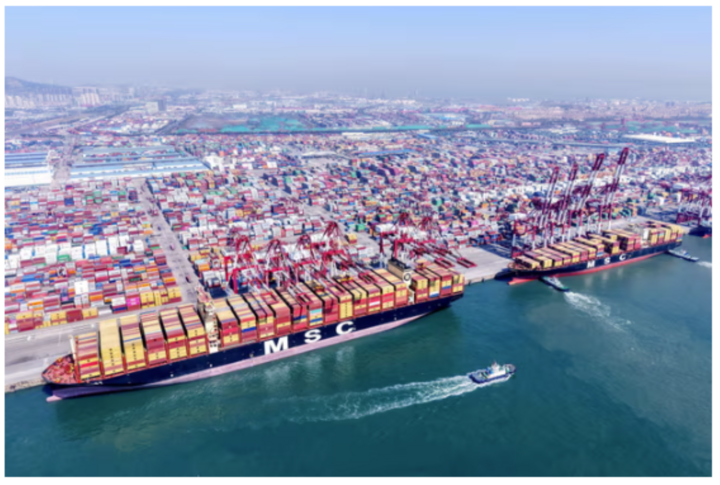 Các tàu container tại cảng Thanh Đảo, tỉnh Sơn Đông, miền đông Trung Quốc. (Ảnh: AFP)