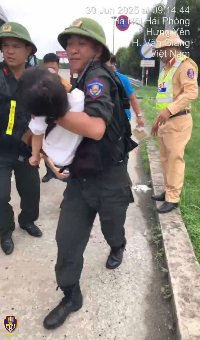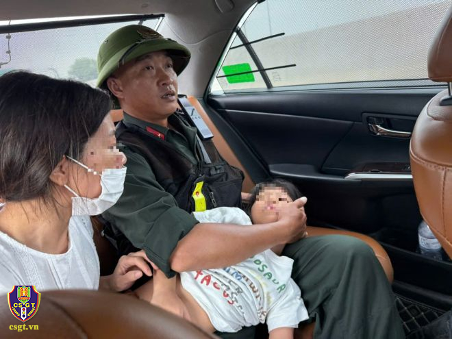 Đang làm nhiệm vụ trên cao tốc Hà Nội - Hải Phòng, Tổ CSGT số 1 thuộc Đội 2, Cục CSGT do đồng chí Trung tá Phạm Văn Thái làm tổ trưởng nhận được thông tin trên xe có cháu bé đang lên cơn co giật, bất tỉnh nên đã nhanh chóng sử dụng xe đặc chủng đưa cháu bé đi cấp cứu kịp thời.