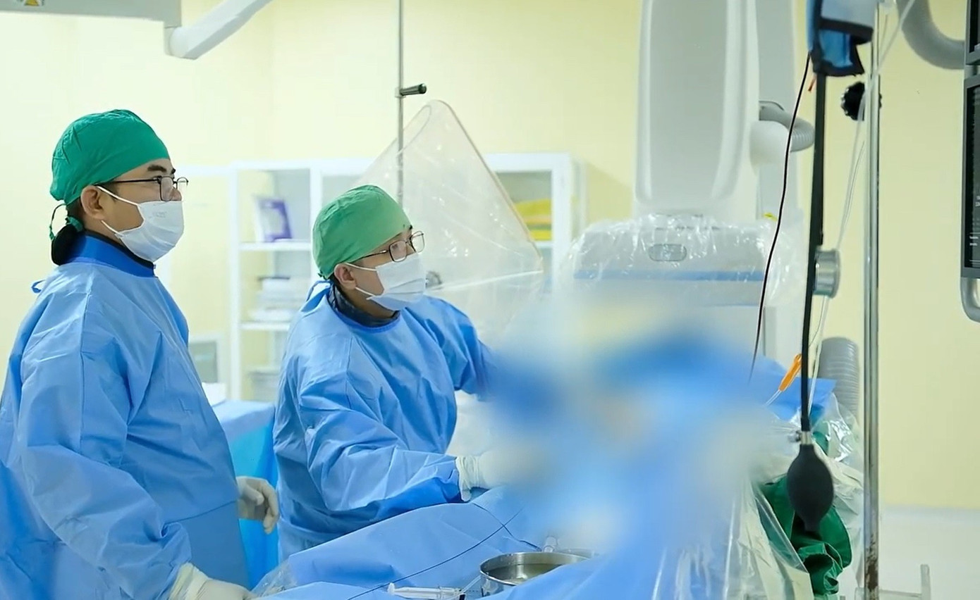 Ê kíp can thiệp đã tiếp cận mạch máu và sử dụng vật liệu tắc mạch chuyên dụng để nút các nhánh mạch gây xuất huyết, qua đó kiểm soát hoàn toàn nguồn chảy máu. Sau can thiệp, bệnh nhân không còn ho ra máu, tình trạng sức khỏe hồi phục tốt.