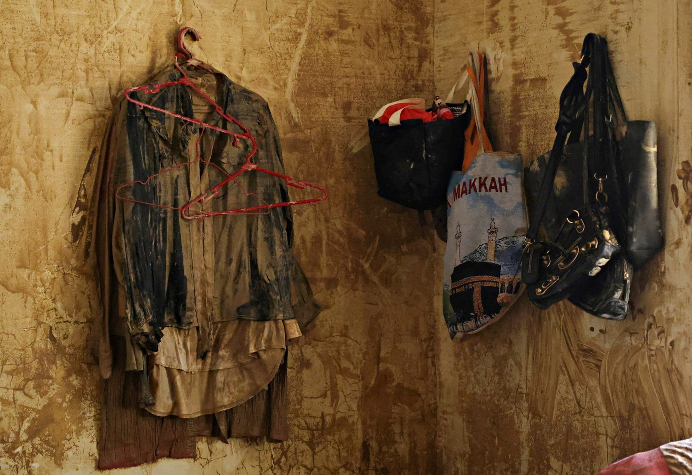 Những cây thánh giá treo trên tường tại Trại Mystic sau trận lũ quét trên sông Guadalupe (Hunt, bang Texas, Mỹ) ngày 7/7. Trận lũ quét trước bình minh đã tàn phá trại hè Cơ đốc giáo hàng trăm năm tuổi này, khiến 27 người thiệt mạng. (Ảnh: Reuters)