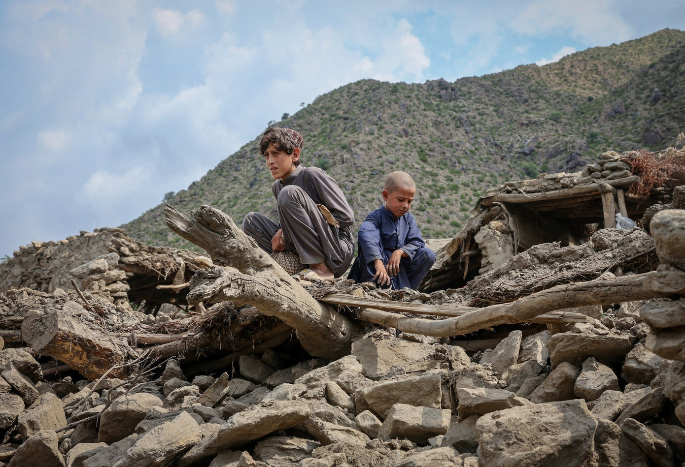 Những cậu bé ngồi trên đống đổ nát của một ngôi nhà sau trận động đất mạnh 6 độ tại làng Lulam (huyện Nurgal, tỉnh Kunar, Afghanistan), ngày 3/9. Hơn 2.000 người Afghanistan đã thiệt mạng trong trận động đất và khoảng 8.000 ngôi nhà bị phá hủy hoàn toàn. Đây là thảm họa thiên nhiên lớn nhất xảy ra ở nước này kể từ khi Taliban nắm chính quyền. (Ảnh: Reuters)