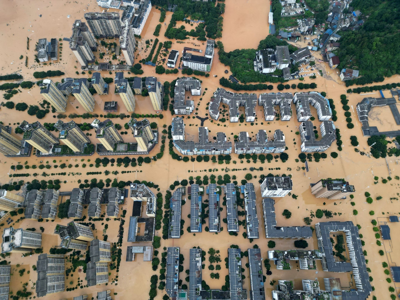 Lượng mưa kỷ lục đã gây lũ lụt ở tỉnh Quý Châu, nhấn chìm nhiều khu vực khi nước lũ dâng cao cuốn trôi ô tô và làm hư hại cơ sở hạ tầng trọng yếu. (Ảnh: Reuters)