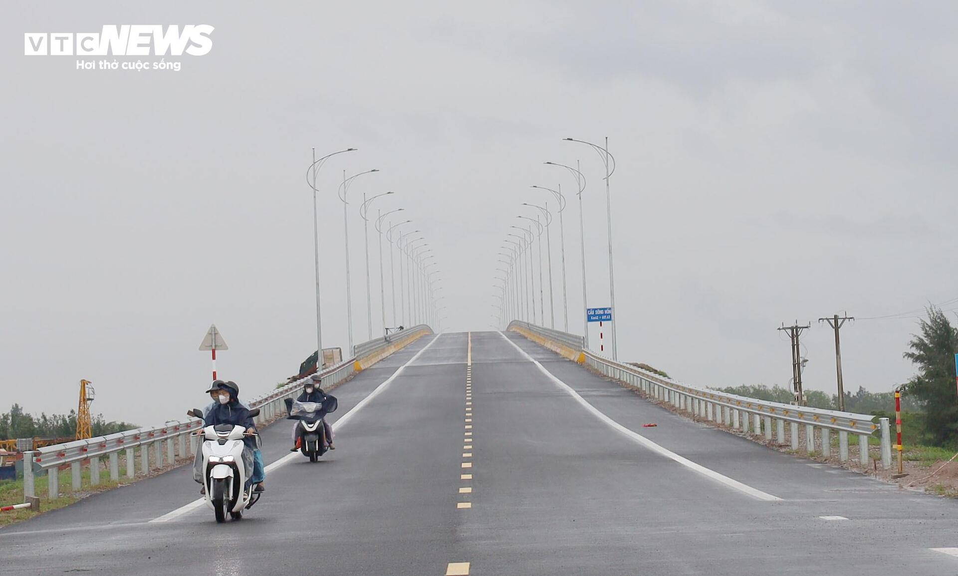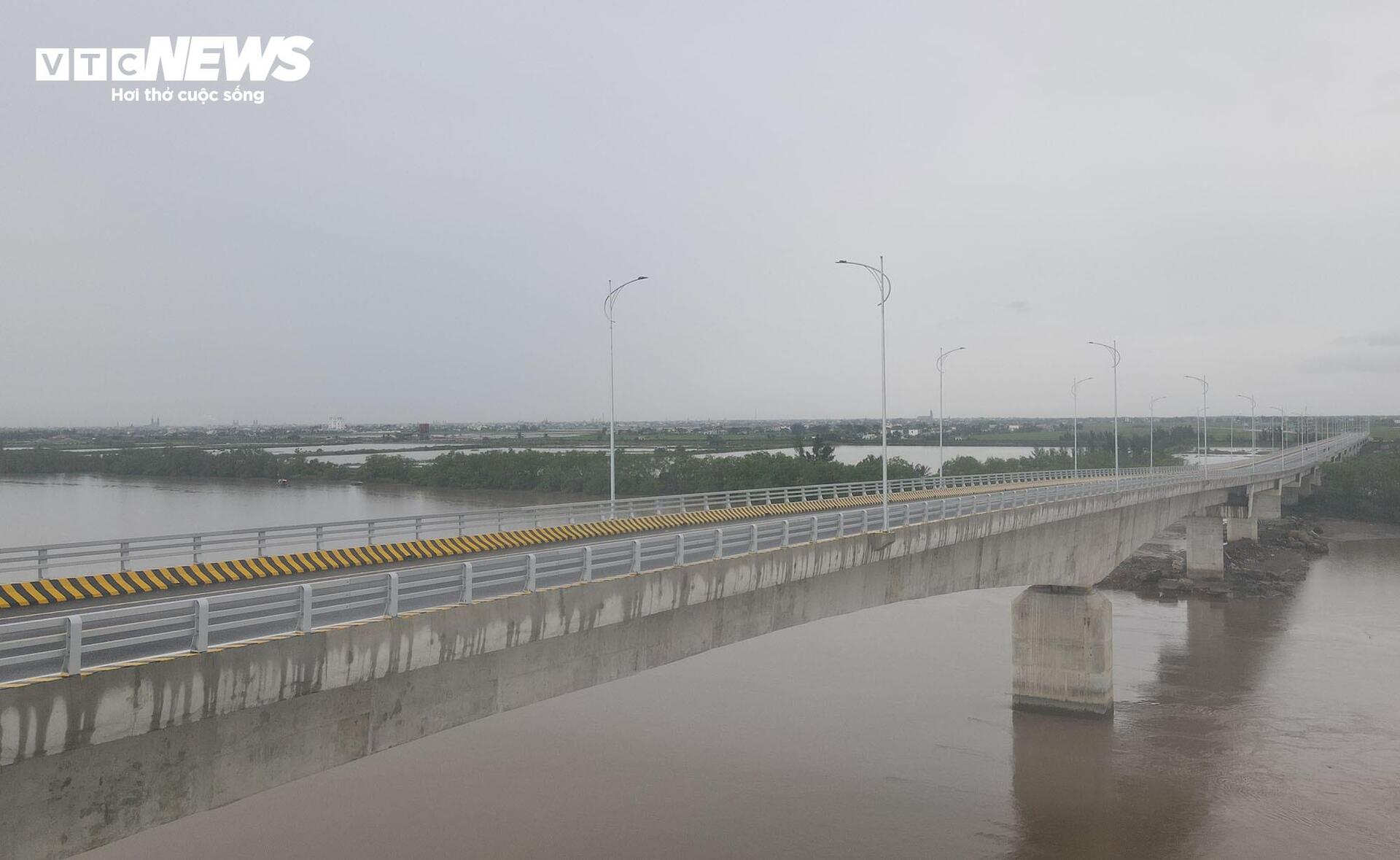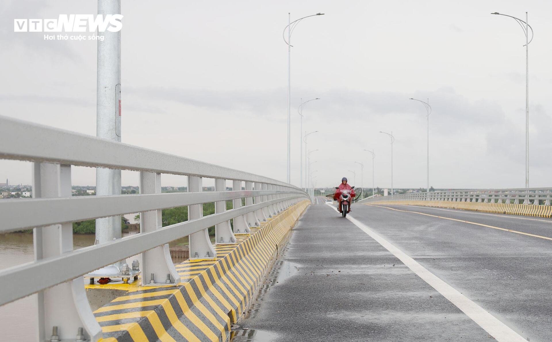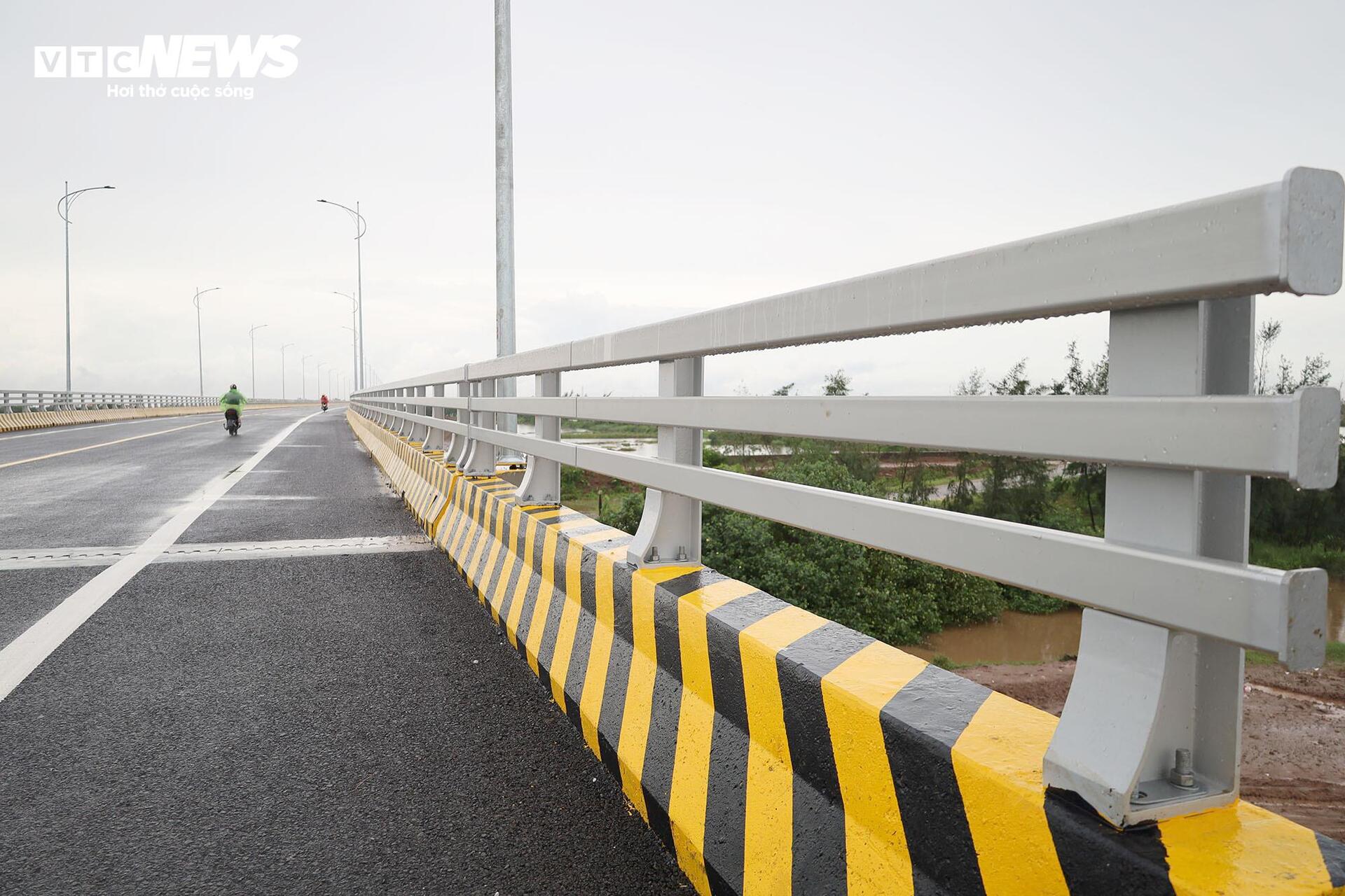 Đường dẫn ở hai đầu cầu được bố trí hệ thống hộ lan kiên cố, biển báo giao thông rõ ràng, đảm bảo an toàn...