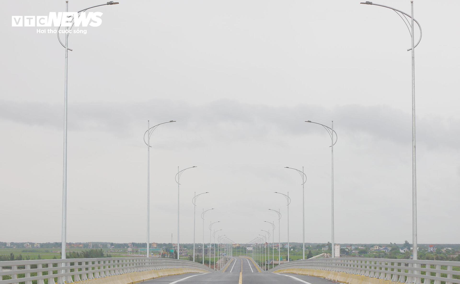 Hệ thống đèn chiếu sáng dọc theo cầu, đáp ứng tiêu chuẩn kỹ thuật, phục vụ lưu thông thuận lợi cả ngày lẫn đêm.
