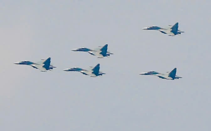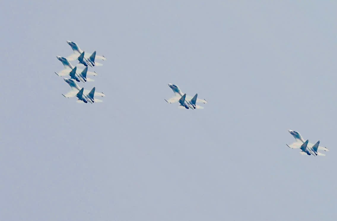 Biên đội Su-30MK2, Yak-130, L-39NG cơ động lấy độ cao, xếp thành đội hình đẹp mắt.