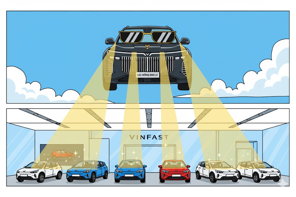 Tin tức bề mặt là thế này: VinFast vừa ra mắt một "quái vật" tên Lạc Hồng 900 LX nặng hơn 5 tấn (tương đương một con voi châu Phi nhỏ), bọc thép toàn thân, "chấp" 440 viên đạn súng trường và 11 quả mìn. Bên trong thì toàn gỗ quý, da xịn, logo mạ vàng. Mục đích: phục vụ các nguyên thủ quốc tế trong dịp lễ Quốc khánh.