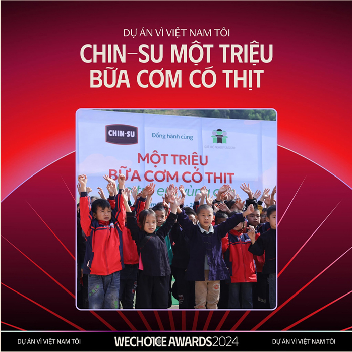 Từ hành động thiết thực và ý nghĩa, dự án “CHIN-SU Một triệu bữa cơm có thịt” đã chạm đến trái tim của cộng đồng, tạo nên làn sóng ủng hộ mạnh mẽ. Trong khuôn khổ giải thưởng truyền cảm hứng WeChoice Awards 2024, dự án “CHIN-SU Một triệu bữa cơm có thịt” đã ghi nhận được sự ủng hộ với hơn 140.000 lượt bình chọn từ cộng đồng, ghi dấu 1 trong 3 đề cử chiến thắng tại hạng mục Dự án Vì Việt Nam Tôi.