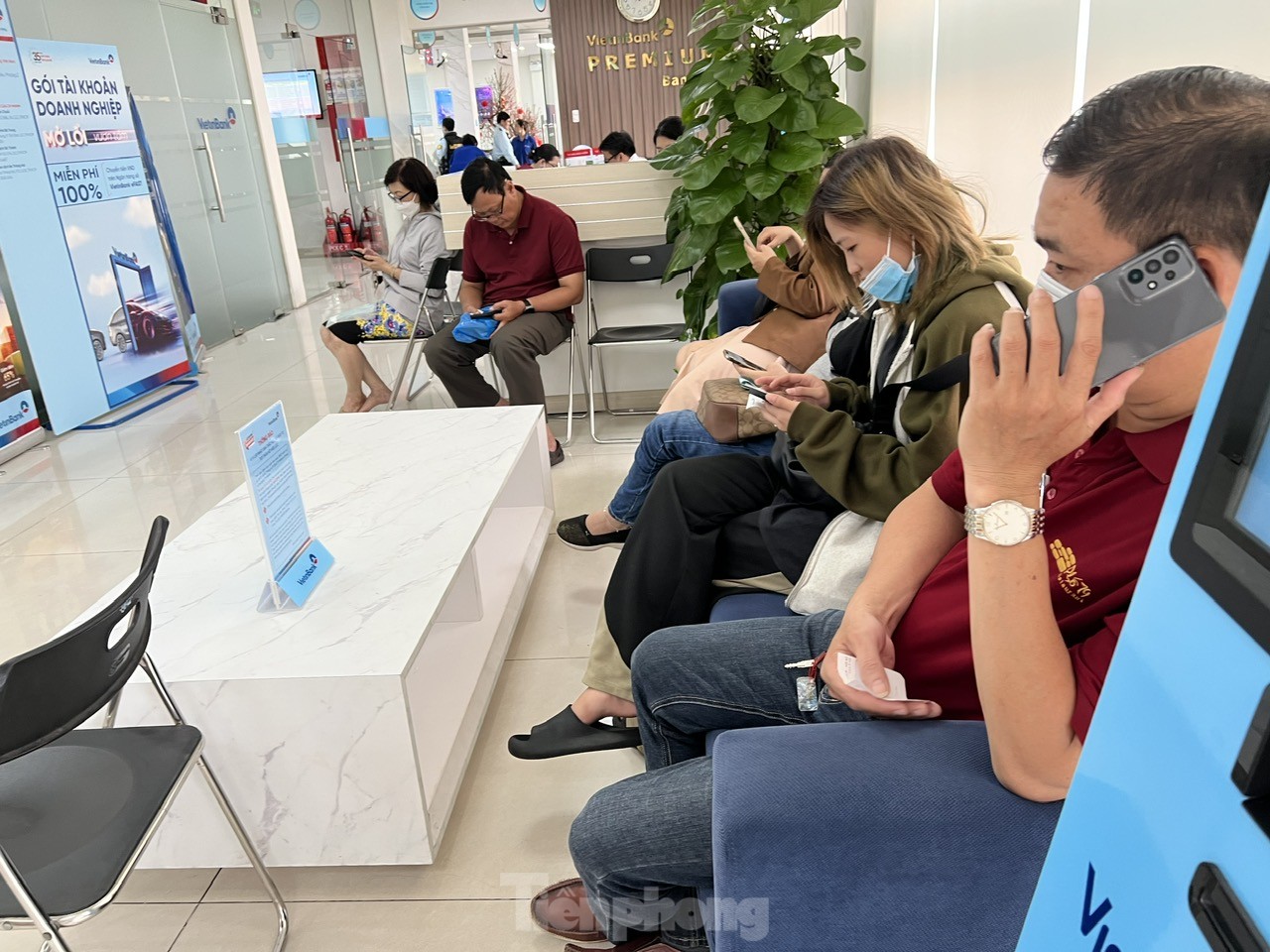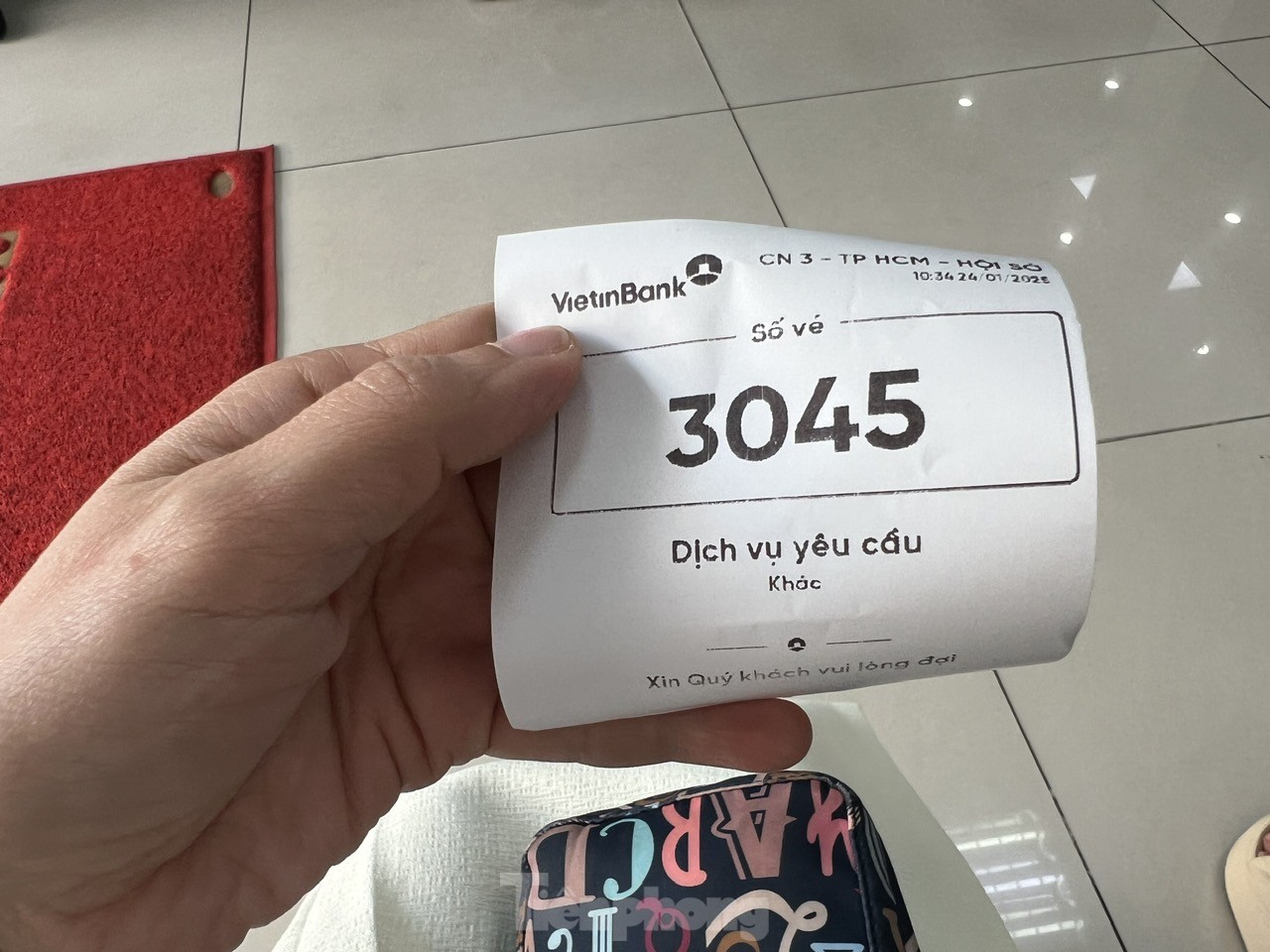 Chờ đợi khá lâu, chị Vy quyết định sẽ quay lại vào đầu giờ chiều. Nhân viên ngân hàng cho biết, do ngày cuối ngân hàng làm việc trước khi nghỉ Tết Nguyên đán 2025 nên lượng khách đến rất đông. Nhân viên này cũng khuyên chị Vy nên đến sớm vì khoảng 15h30 ngân hàng sẽ ngừng đón khách mới.