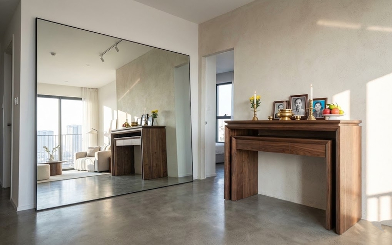 Phòng khách được ví như trái tim, còn cửa chính (đại môn) chính là cái miệng nạp khí của cả ngôi nhà. Mọi sự may mắn, tài lộc, vượng khí của đất trời trong ngày đầu xuân đều sẽ đi qua cửa chính để vào nhà. Thế nhưng, sai lầm phổ biến nhất mà rất nhiều gia đình mắc phải, đặc biệt là ở các căn hộ chung cư có diện tích nhỏ, là đặt một chiếc gương lớn đối diện ngay cửa ra vào.