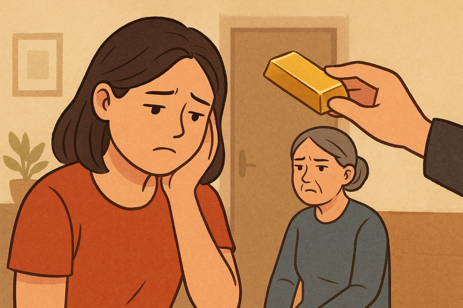 Tôi nghe mà sững sờ. Tôi cố giải thích: "Mẹ ạ, lúc em con cưới, vàng rẻ, nên con cho 2 chỉ. Giờ vàng gấp đôi, con cho 1 chỉ nhưng giá trị còn cao hơn cả ngày xưa. Con cũng đâu phân biệt gì".