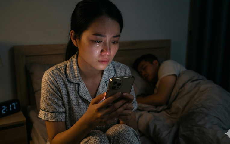 Tôi đứng lặng người trong bóng tối, nhìn chồng mình đang ngủ say bên cạnh. Tôi tự hỏi, từ bao giờ chồng mình lại trở thành "nơi trú ẩn" cảm xúc cho một người phụ nữ khác vào cái giờ mà lẽ ra anh ấy chỉ nên thuộc về vợ con?