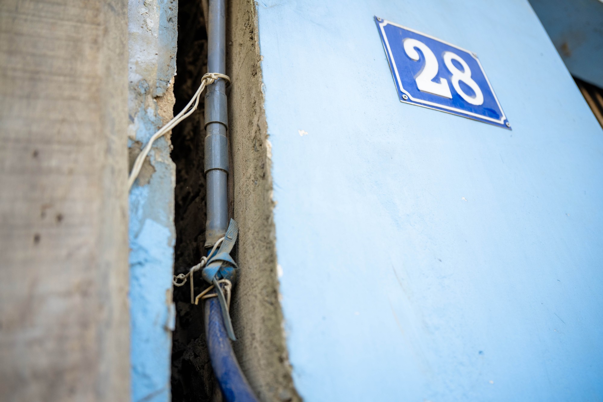 Qua rà soát kỹ lưỡng dọc theo hệ thống lưới điện sinh hoạt, chủ nhà đã phát hiện điểm xung đột tại khu vực giáp ranh giữa hai khối nhà. Một sợi dây điện nguồn dẫn từ nhà hàng xóm vòng sang, do ma sát lâu ngày tại vị trí khe kẹt hẹp, đã bị sờn lớp vỏ cách điện. Đáng chú ý, điểm sờn này nằm đúng vị trí tiếp xúc với hệ thống dây chống sét chạy dọc xuống đất.