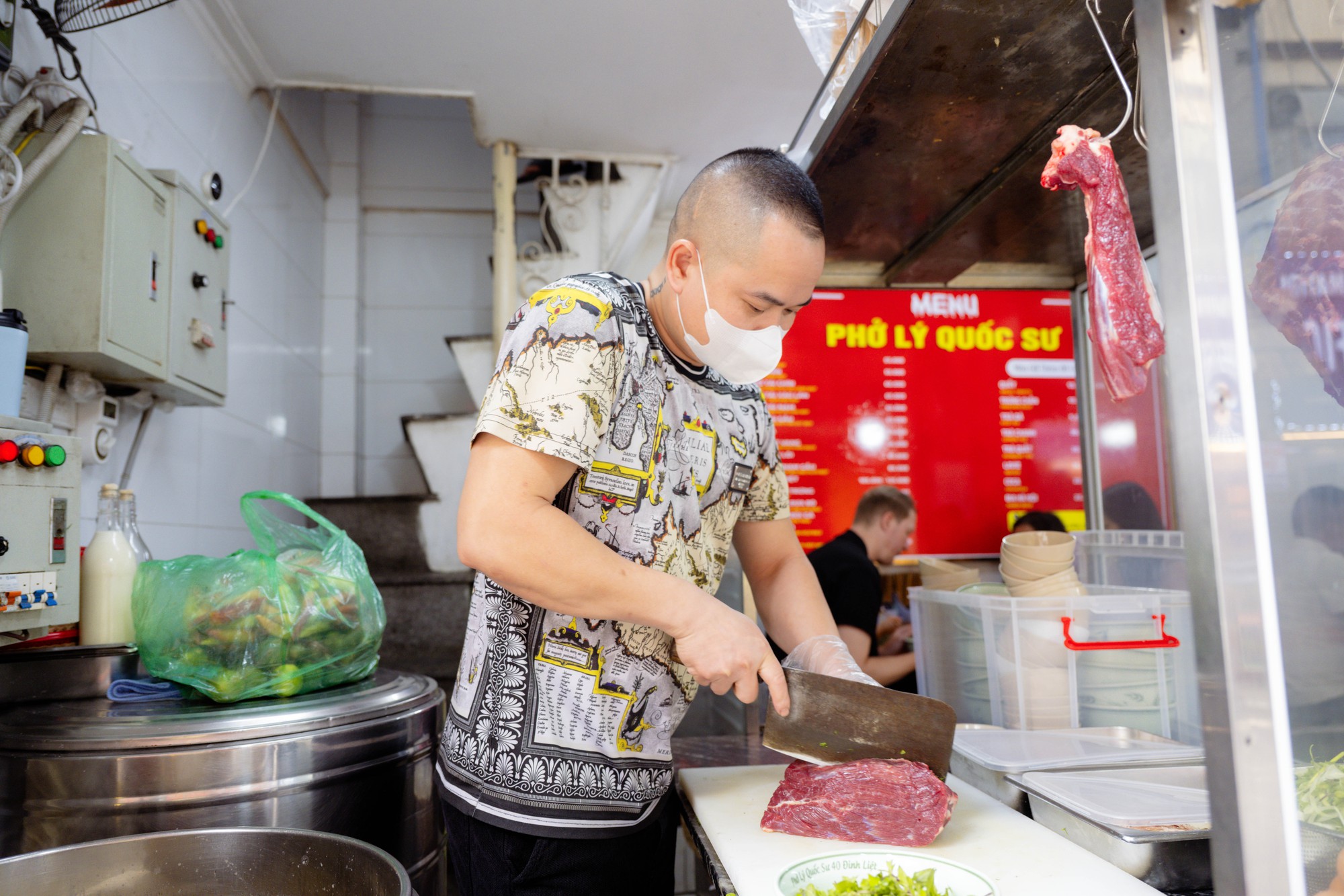 Sự hồi hộp hiện rõ trên gương mặt người chủ quán có 18 năm kinh nghiệm khi những bát phở nóng hổi và đĩa cơm rang được bưng ra. Đối với anh Mùi, đó không chỉ là món ăn, mà là "bài kiểm tra" về hương vị Việt đối với những vị khách quan trọng.