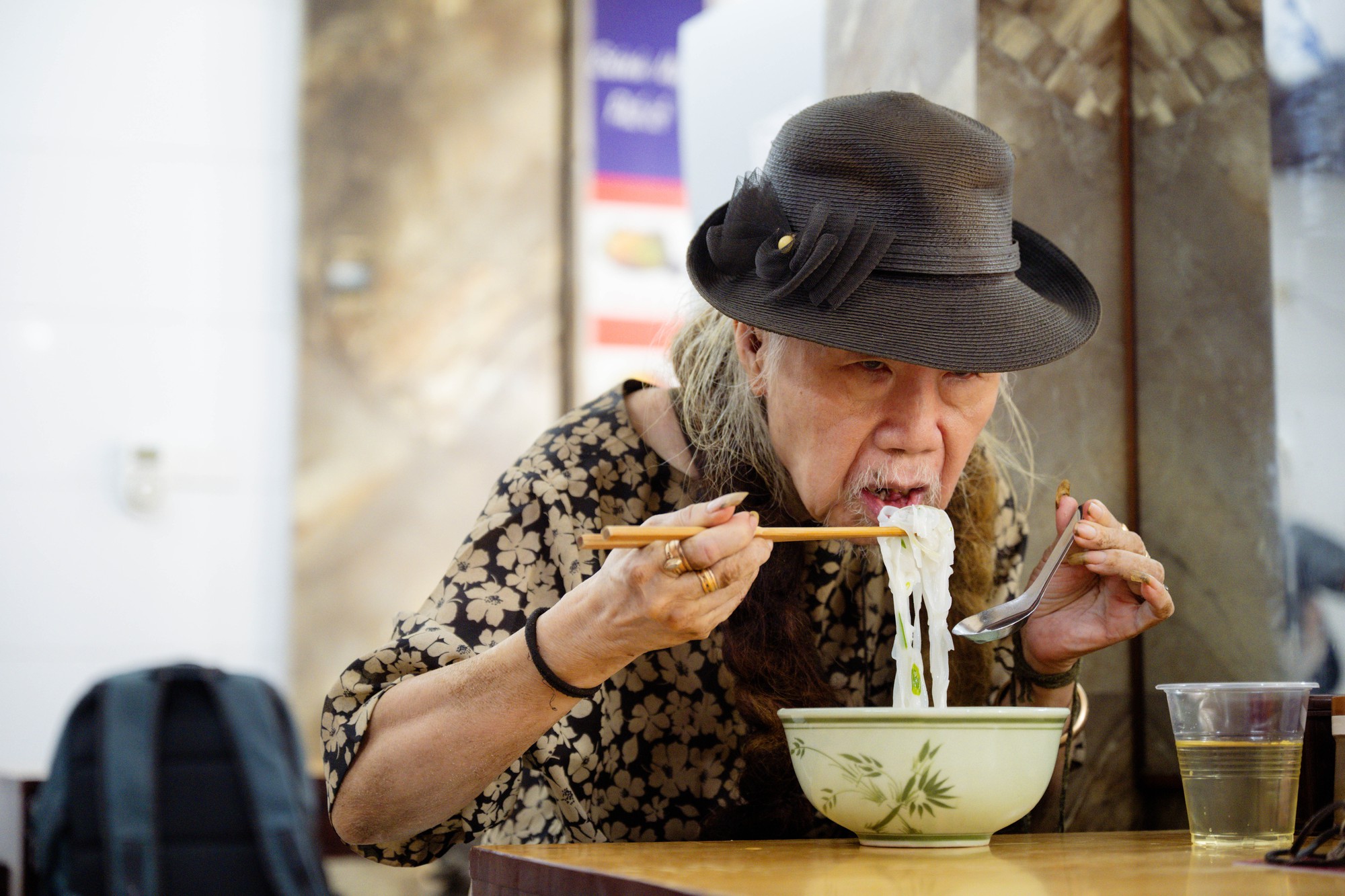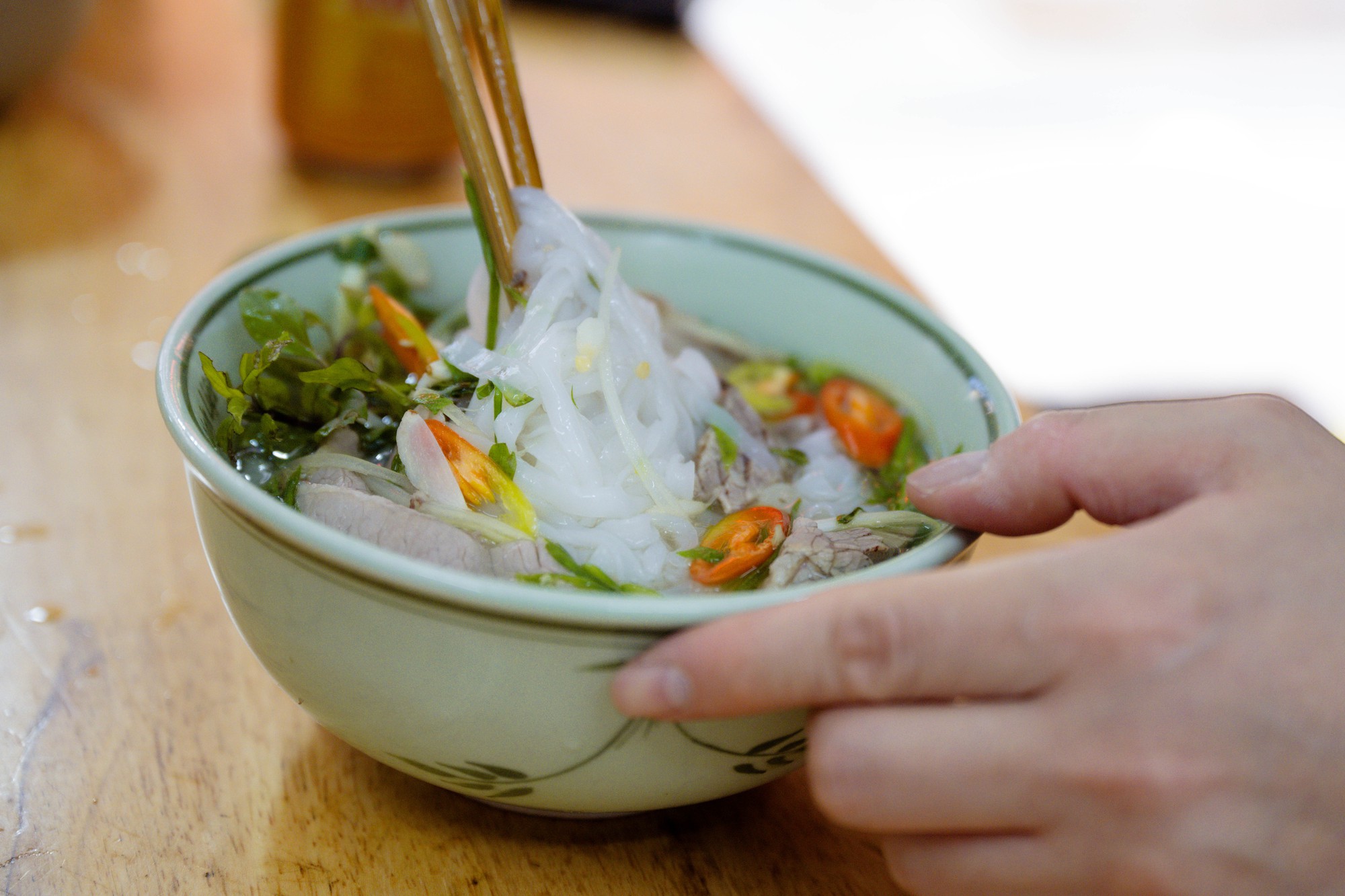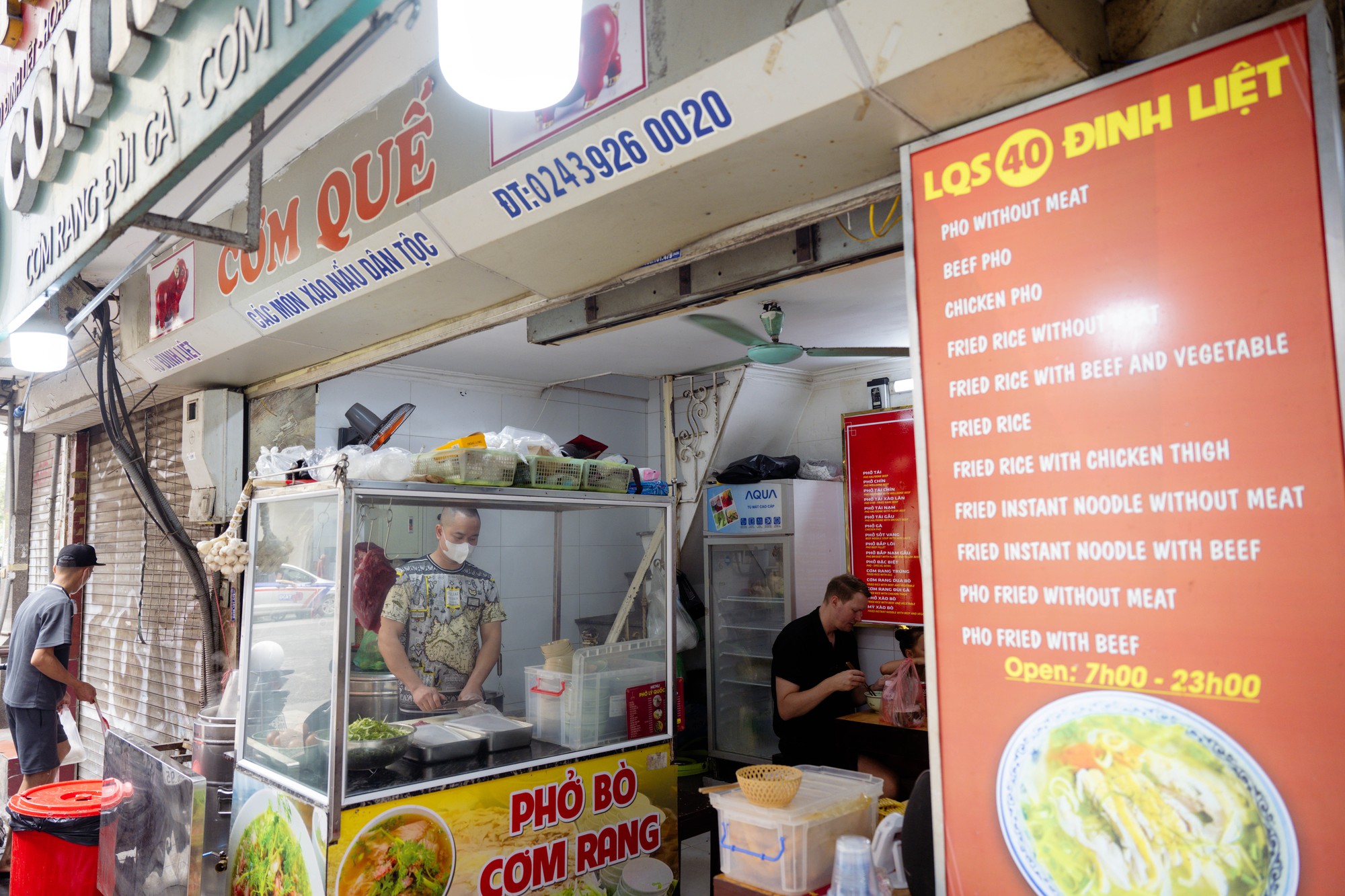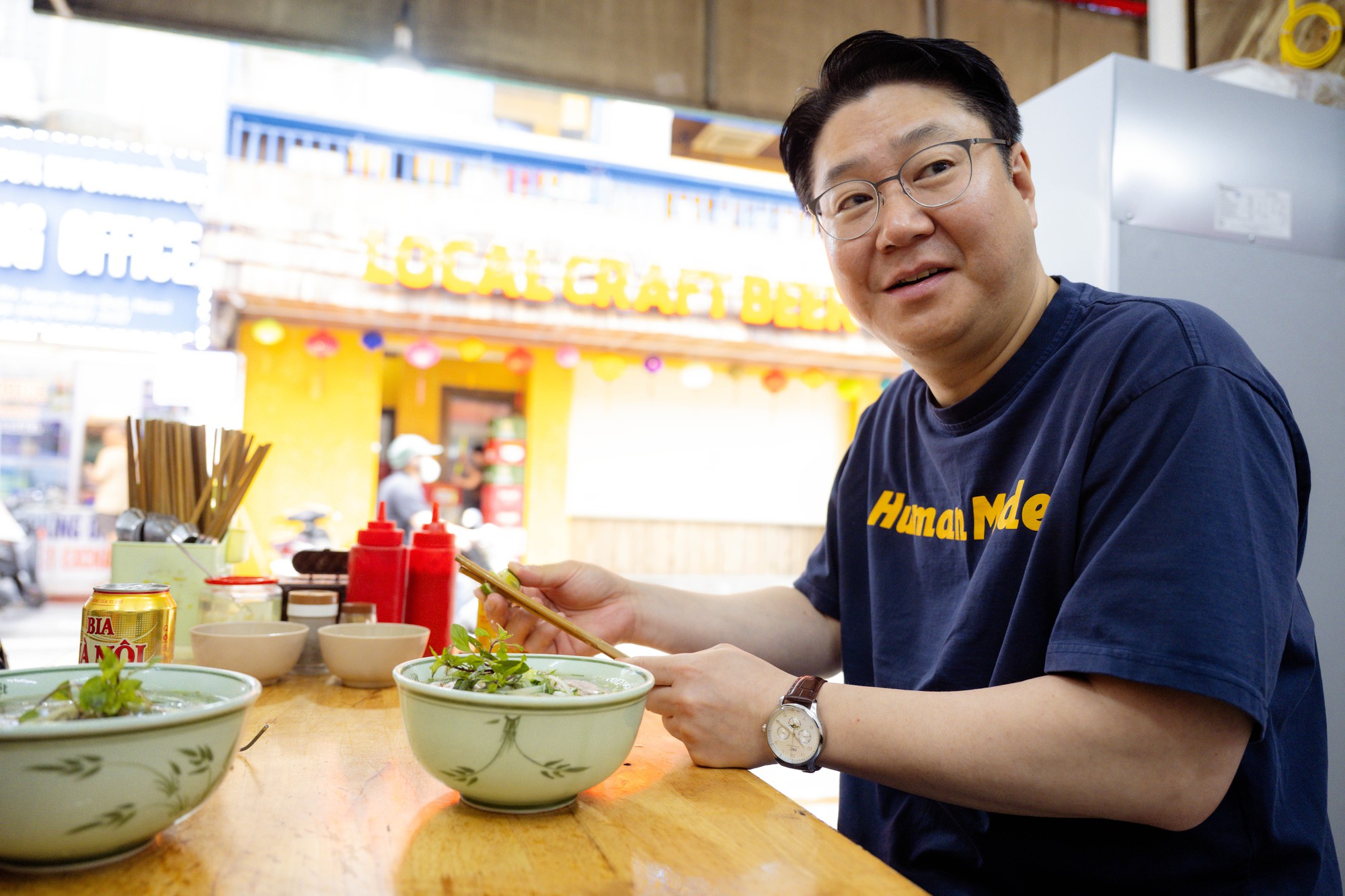 Một du khách Hàn Quốc thưởng thức tại quán phở