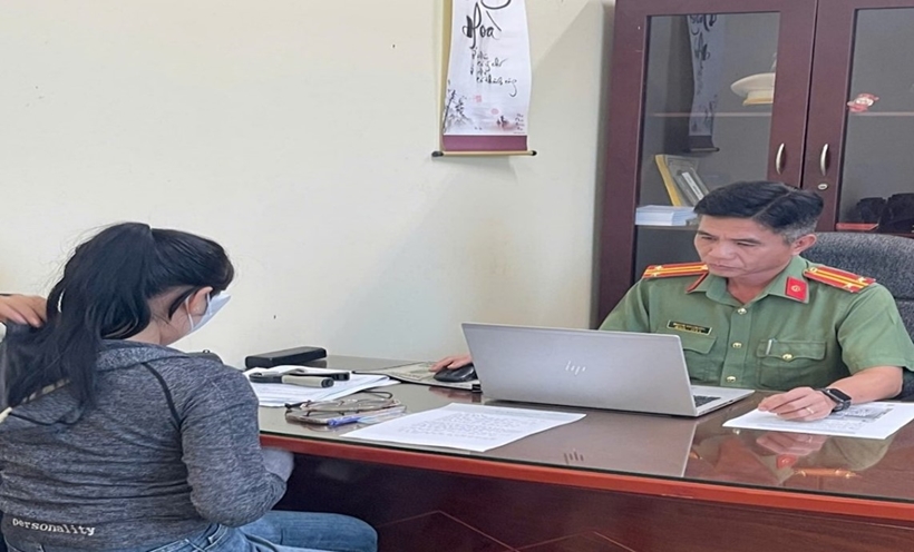 Chị V. làm việc với công an. (Nguồn: Công an tỉnh Đồng Nai)