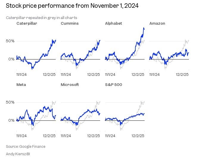 Mặc dù vậy theo BI, một vài chỉ báo cho thấy thị trường có thể đang đẩy nhóm "cuốc xẻng thời AI" đi quá xa. Tháng 10, Morgan Stanley ước tính mảng phát điện của Cat đang được nhà đầu tư định giá gấp 60-100 lần thu nhập vận hành. Con số tương tự đối với Nvidia là 25 lần, với GE Verova (một doanh nghiệp thiết bị điện khác) là 28 lần.