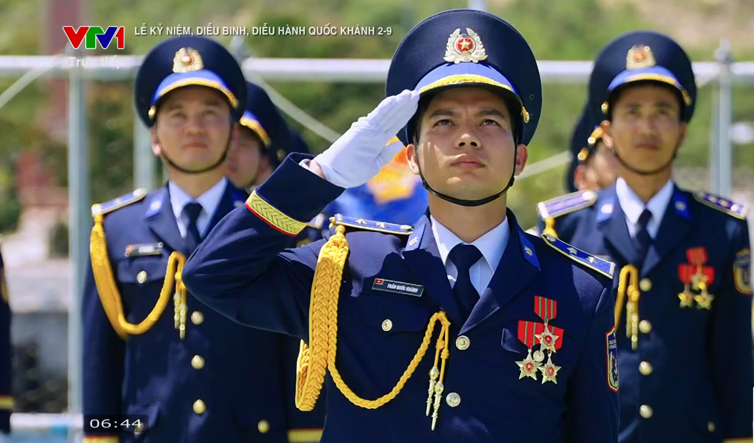 Hình ảnh các chiến sĩ đứng nghiêm, thần thái tự tin, hướng về phía cờ Tổ Quốc khiến nhiều người tự hào