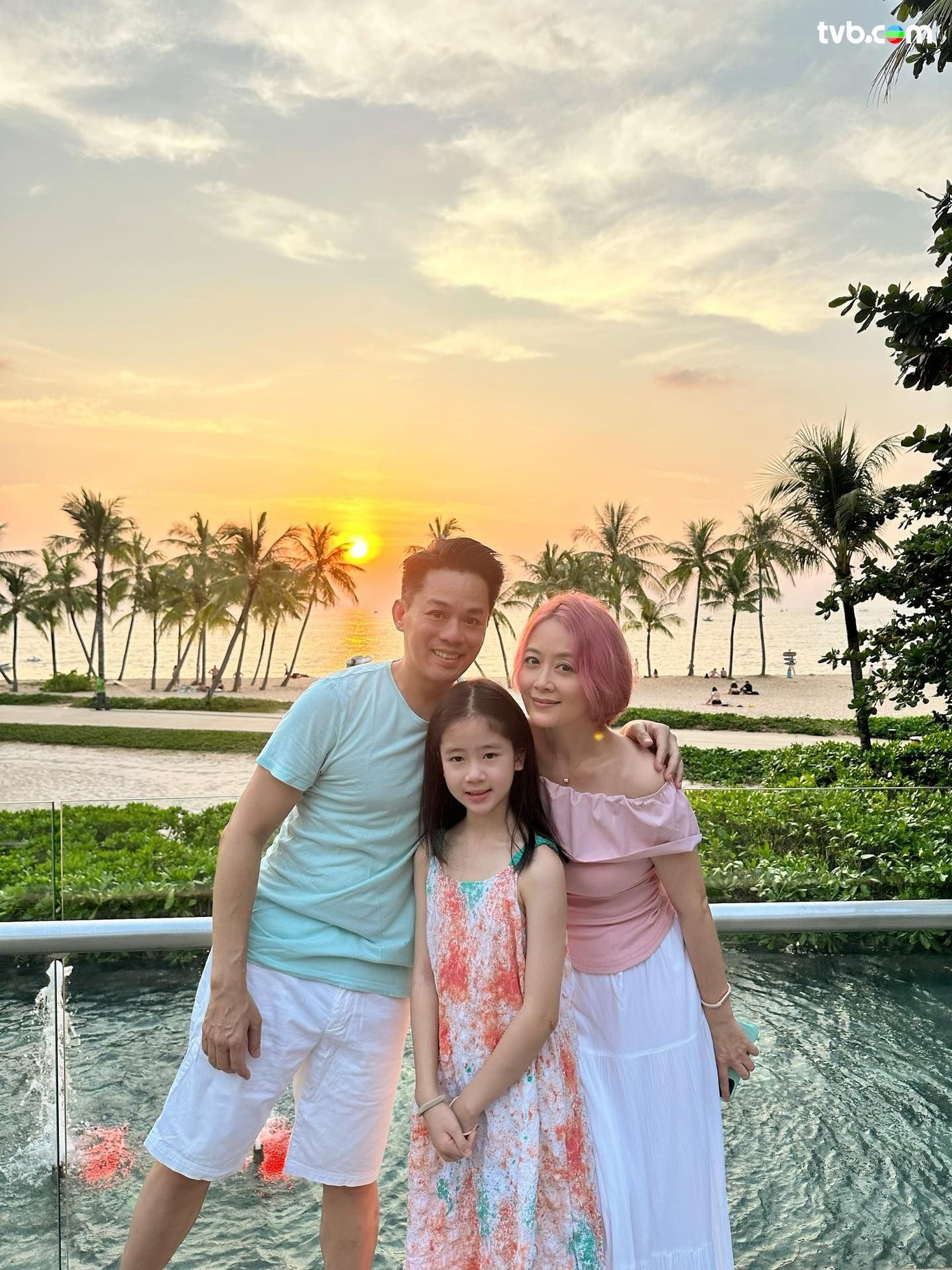 Trong video “biến hình” đăng ngày 24/2, biểu tượng gợi cảm Hong Kong nắm tay chồng, diễn viên Trương Luân Thạc, và các con gái check-in ở sân bay. Sau cái xoay người, gia đình năm người đổi địa điểm sang bãi biển và đã thay trang phục khác.