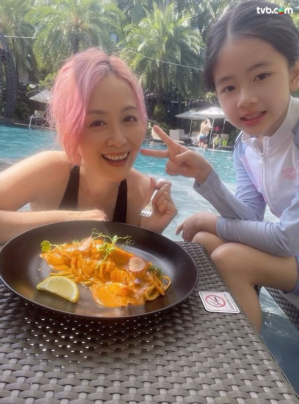 Ở bức ảnh khác, cô thay sang bộ đồ bơi cổ yếm màu đen, khoe xương quai xanh quyến rũ cùng làn da trắng mịn. Con gái 10 tuổi của Diêu Lạc Di cũng xuất hiện với cha mẹ trong nhiều khung hình. Cô bé được khen thừa hưởng vẻ đẹp từ người mẹ nổi tiếng.