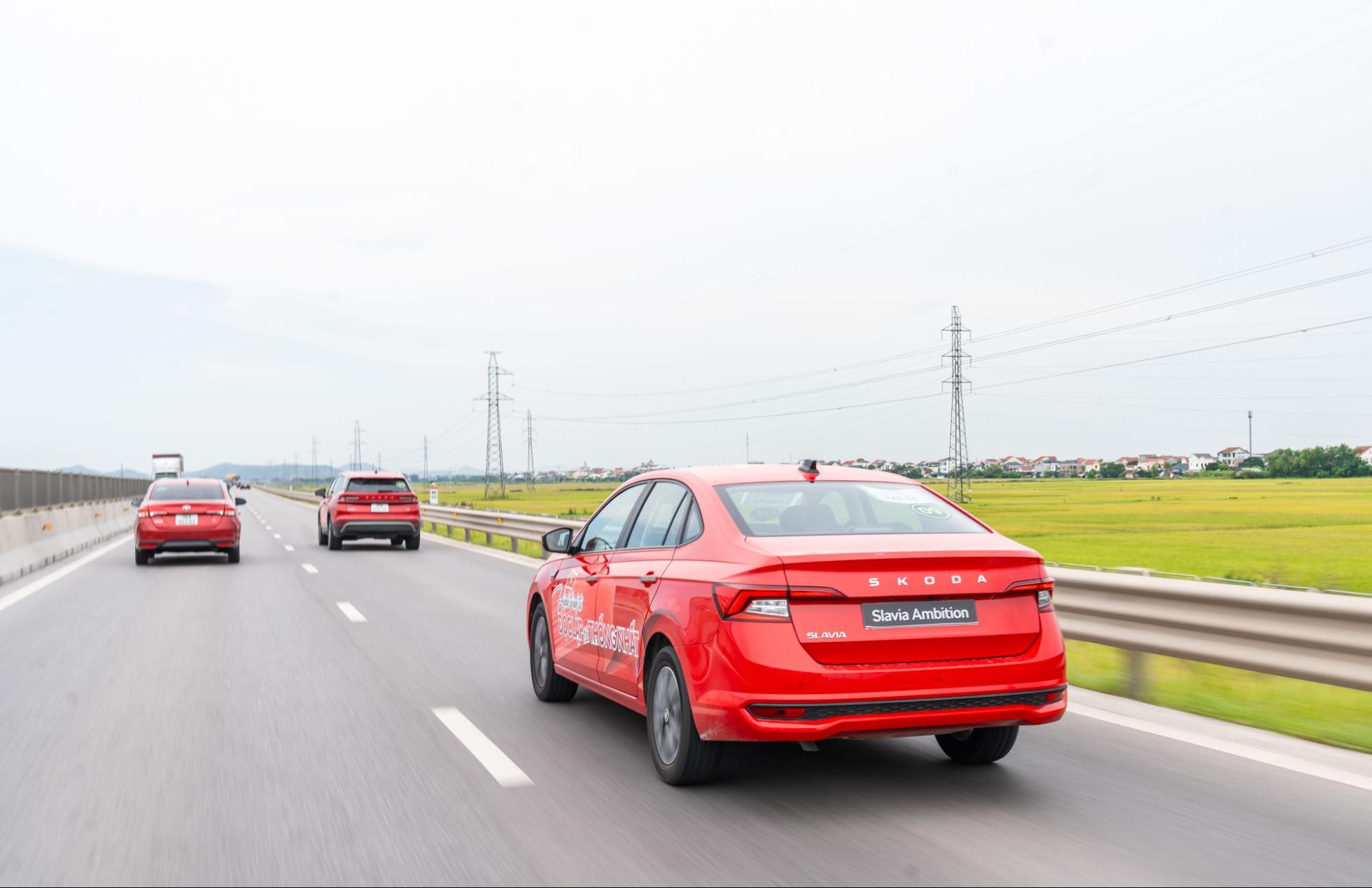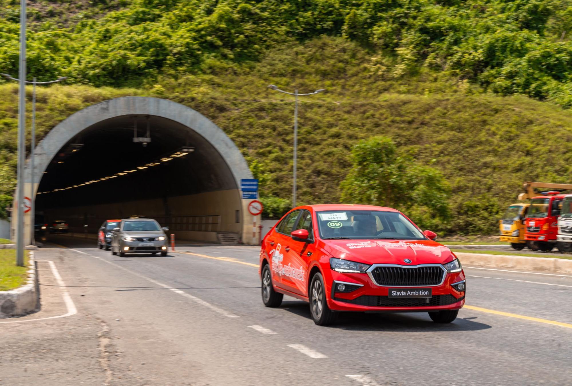 Slavia là mẫu sedan đầu tiên của Skoda chuẩn bị ra mắt chính thức tại Việt Nam, vì vậy sự xuất hiện của xe trong hành trình xuyên Việt đã thu hút nhiều sự chú ý từ cả thành viên đoàn lẫn người dân. Anh Trần Giáp gia nhập từ Đà Nẵng đúng lúc đoàn bổ sung 3 chiếc Slavia nên có cơ hội cầm lái qua nhiều cung đường.