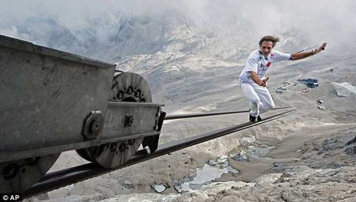 Anh chàng Michael Kemeter đến từ Australia đã đi trên dây bằng đôi chân trần giữa thời tiết sương mù lạnh giá. Sợi dây có độ dài 46m, được nối từ đỉnh Grossglockner tới đỉnh Mont Blanc của dãy Alps, nước Áo.