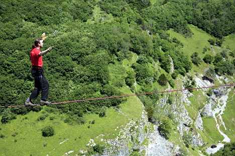 Vào tháng 8 năm 2009, vận động viên đi trên dây Jon Ritson đã trình diễn đi trên sợi dây có bề ngang 1,54cm trên vực Cheddarr, Somerset, Anh. Anh chàng 27 tuổi này đã mất 3 giờ đi hết sợi dây dài 28m ở độ cao 150m.