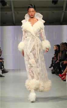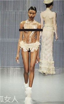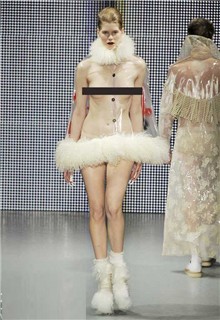 Nằm trong khuôn khổ tuần lễ thời trang thu/đông London vừa qua, dù là trang phục dành cho mùa giá rét nhưng Charlie Le Mindu "thản nhiên" để người mẫu ở trần, bán nude hoặc có mặc cũng chỉ là một tấm ren mỏng tang và trong suốt.