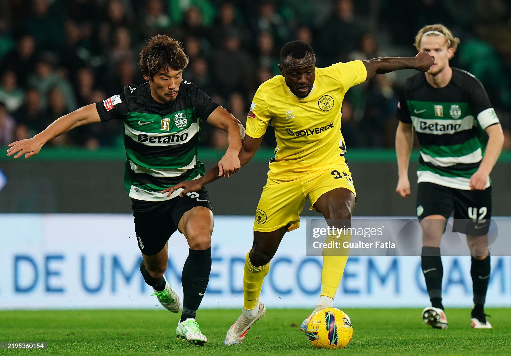 Joel Tagueu (áo vàng) cùng Nacional đối đầu Sporting Lisbon ở mùa giải vừa qua.