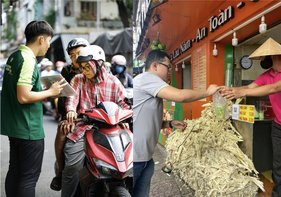 Không chỉ phục vụ khách vãng lai, sức nóng của thời tiết còn mang đến nhu cầu chốt đơn online từ giới văn phòng. Chị Minh Thư, một nhân viên công sở chia sẻ: "Trưa nắng thế này thò mặt ra đường là xỉu nên cả phòng toàn gom lại đặt trên app. Nước mía hay sâm lạnh vừa dễ uống, giải nhiệt tốt mà giá lại quá rẻ, đặt chục chai uống cả chiều cũng không đáng bao nhiêu tiền."