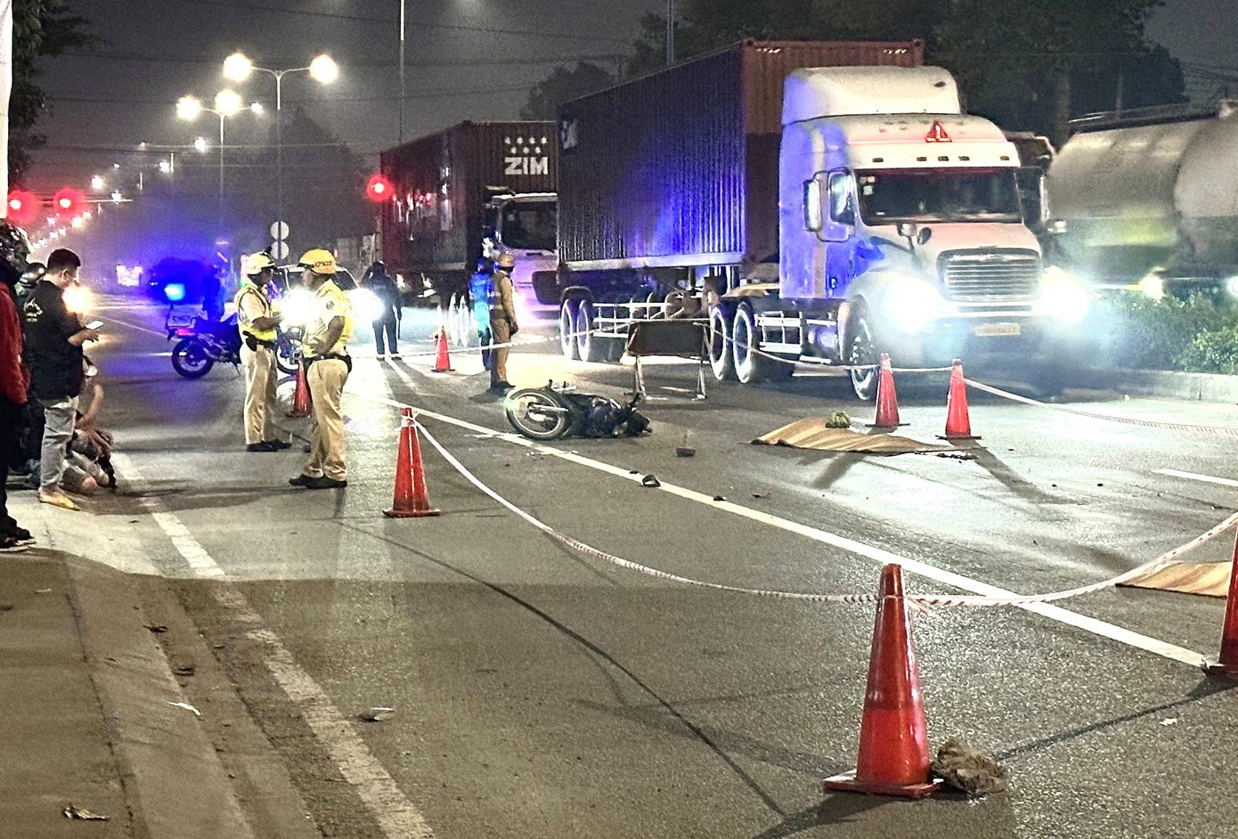 Sau khi đánh lái qua trái, xe máy bị xe đầu kéo container lưu thông cùng chiều tông trúng. Sau va chạm, xe máy và hai người ngã xuống đường, trong đó người điều khiển bị bánh xe đầu kéo container cán qua người tử vong tại chỗ.
