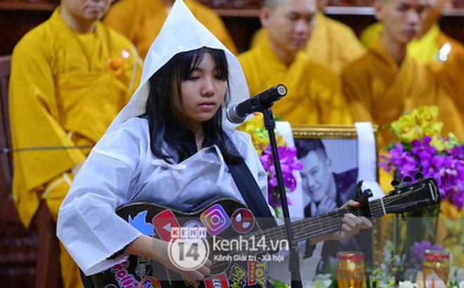 Con gái cả Vân Quang Long bật khóc khi hát trong tang lễ bố