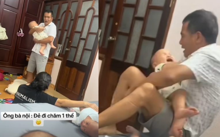 Đoạn clip ngắn với nội dung ngắn gọn: "Ông bà nội bảo đẻ đi chăm một thể" nhưng hình ảnh ghi lại thì không thấy 1 thể nào hoảng hốt đến thế!
