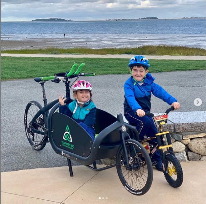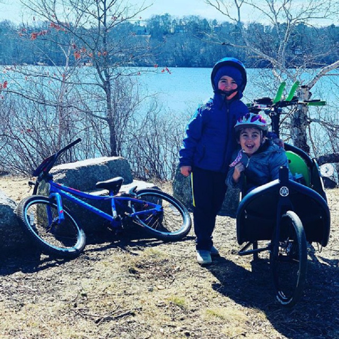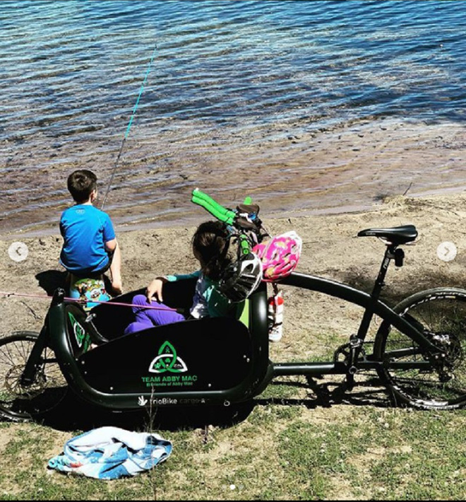 Ba bố con thường xuyên đi ra ngoài cùng nhau và Abby sẽ được chở trên chiếc xe đạp đặc biệt.