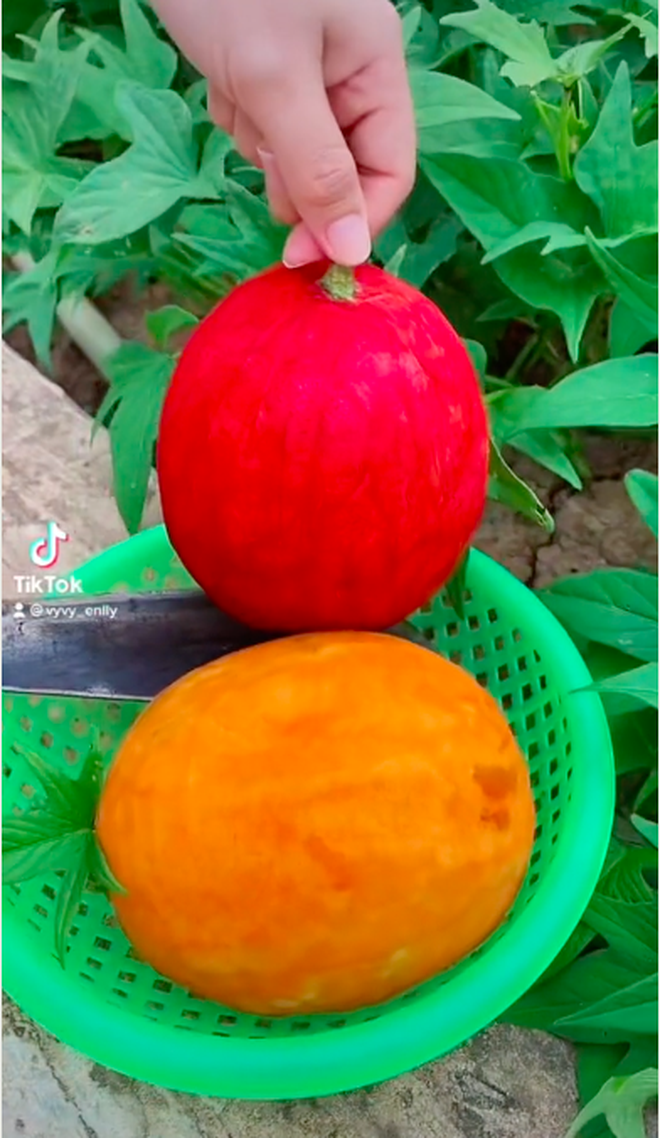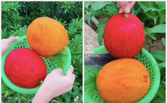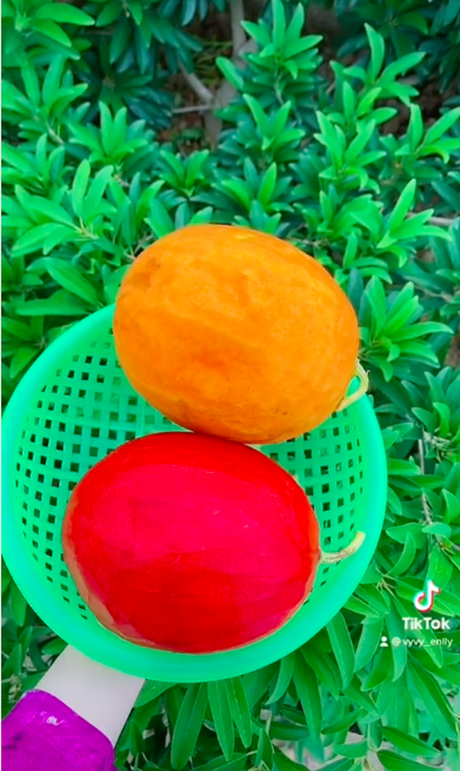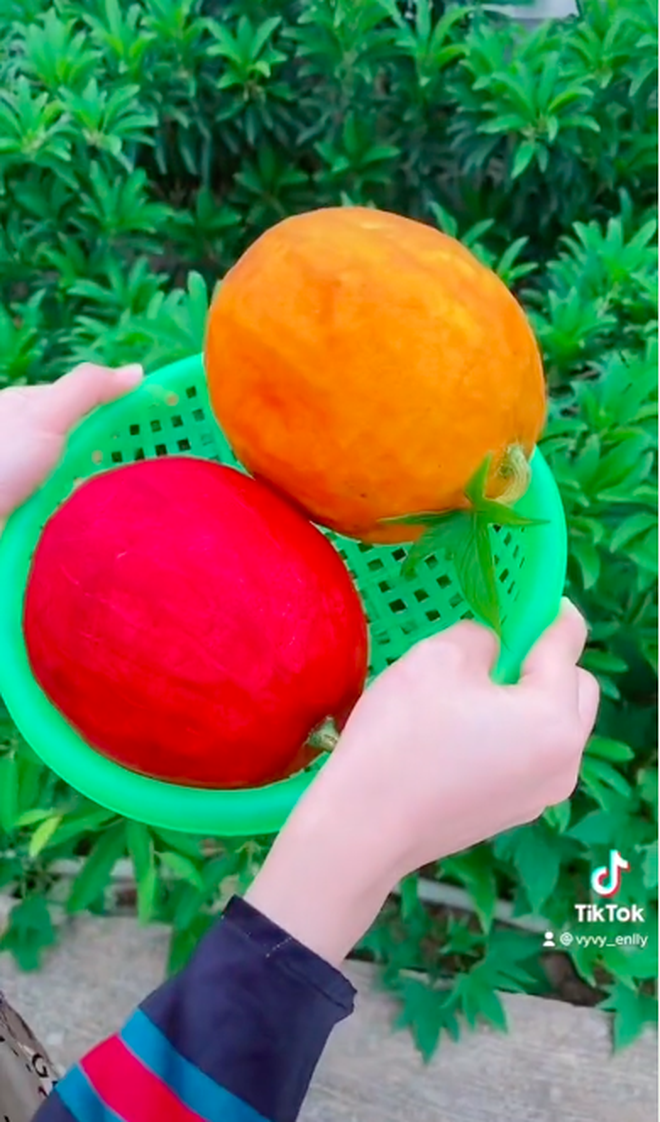 Cũng có bạn cho rằng cô gái kia chỉ đang "câu view" mà thôi. Loại quả kia rất có thể là dưa hấu hay dưa gang gì đấy nhưng đã được sơn màu lên: