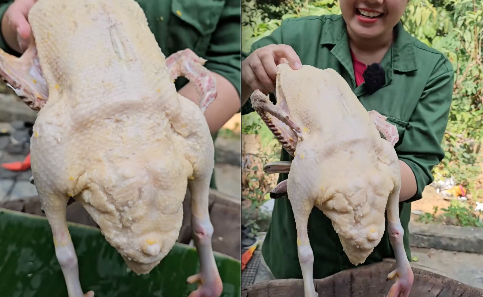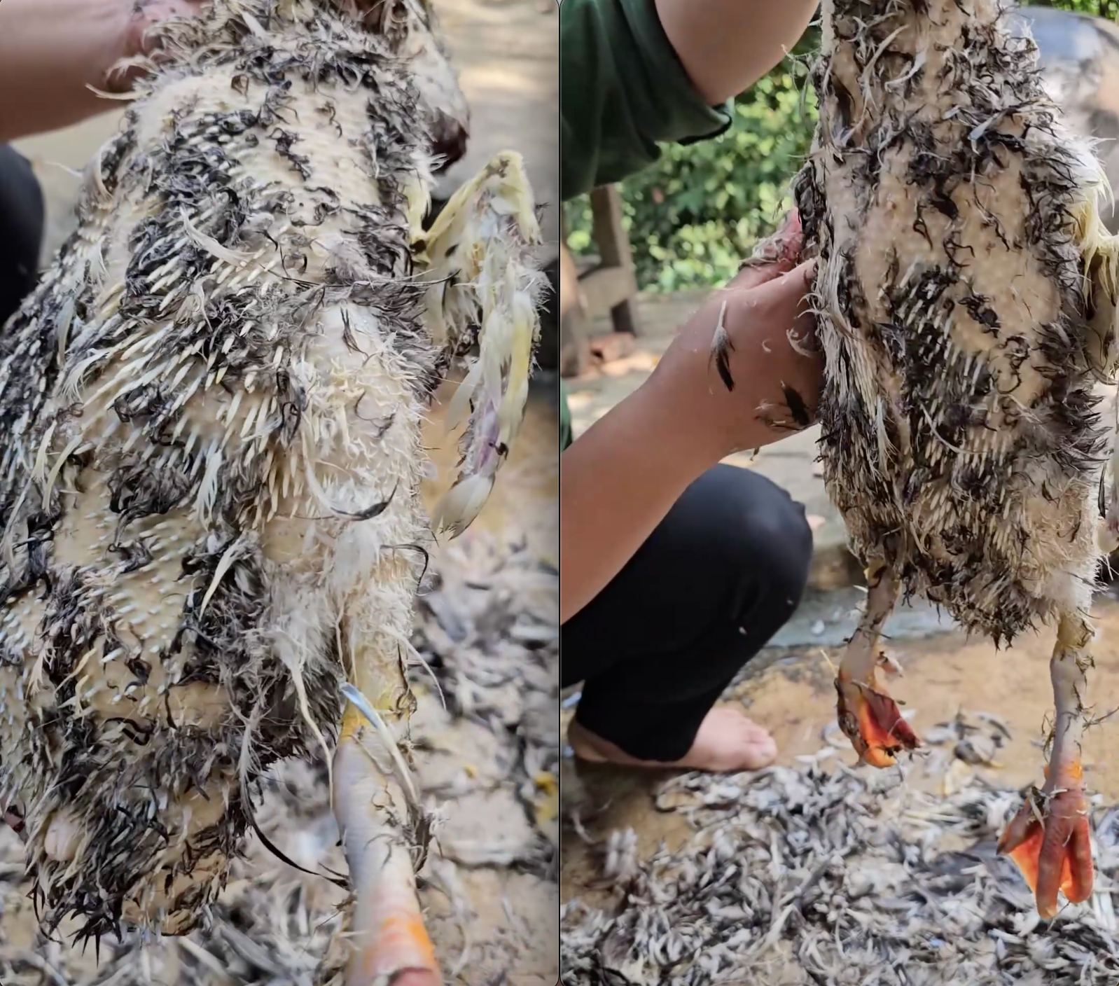 Hình ảnh con vịt với nhiều lông tơ khó nhổ (Ảnh chụp màn hình)